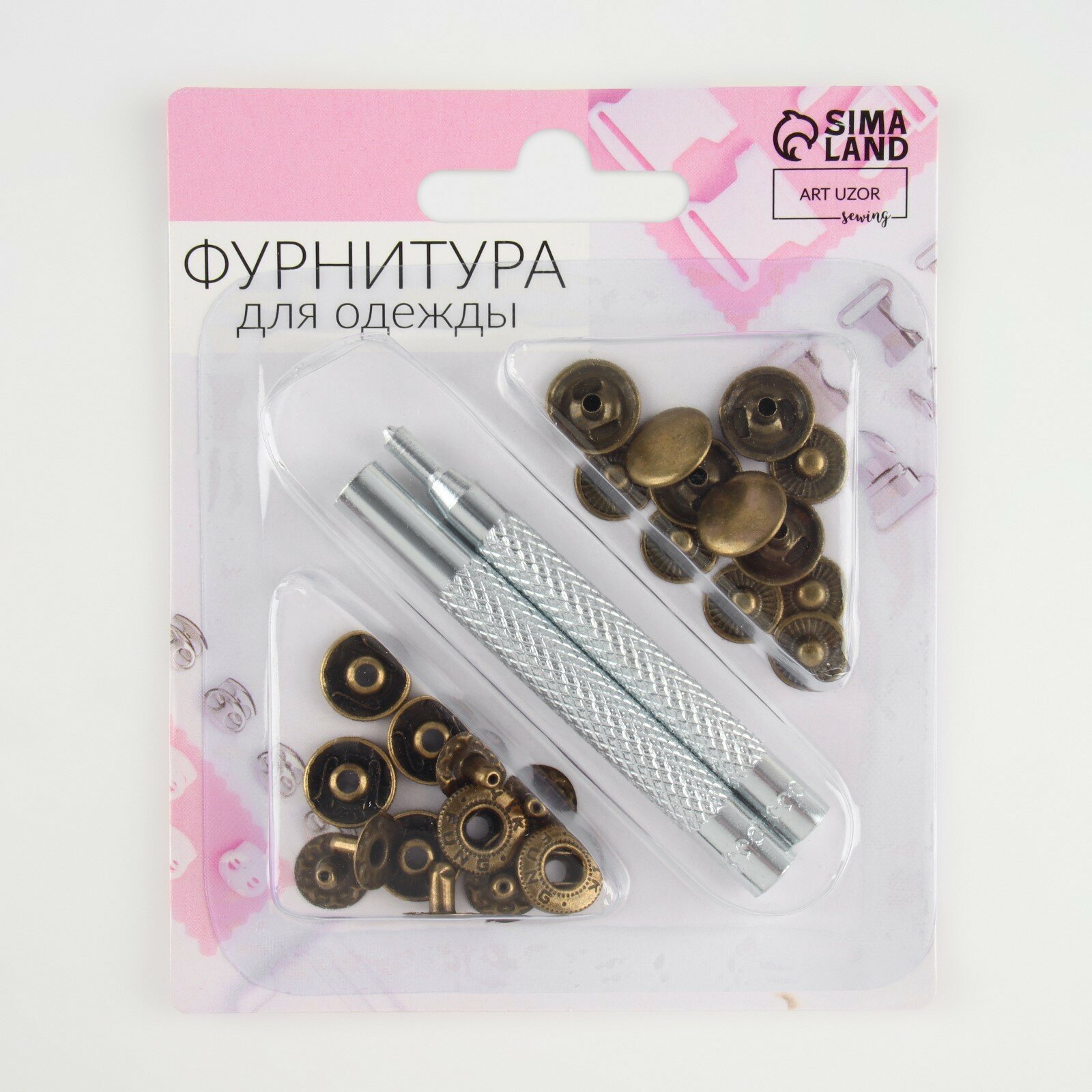 Кнопки установочные, Альфа (S-образные), d = 13 мм, 6 шт, с установщиком, цвет антик интересное: