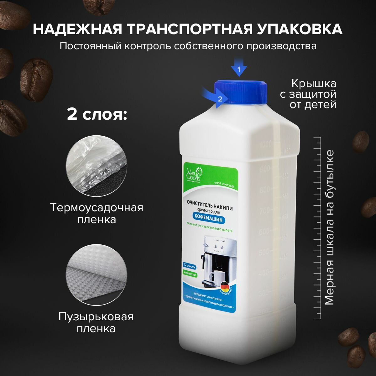 Средство для удаления накипи в кофемашинах VERYGOODS, концентрат 1000 мл, VG-722