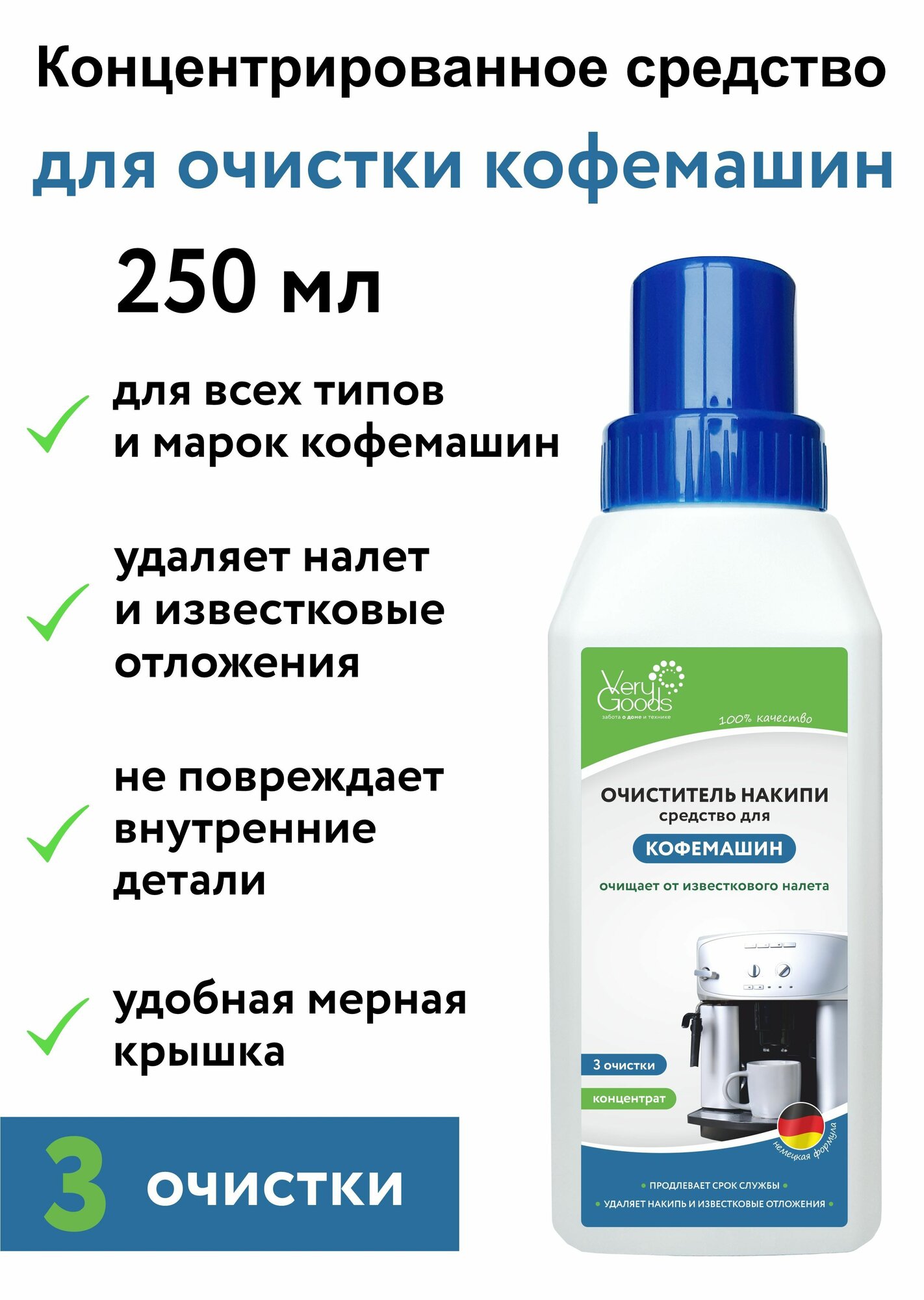 Средство от накипи для любых кофемашин Delonghi, Philips и др. 1000 мл, VeryGoods, VG-722
