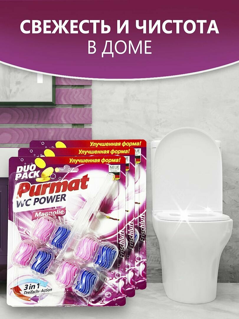 Купить Подвесной блок 3 в 1 для туалета PURMAT "Магнолия", 3 уп. по 100 г.