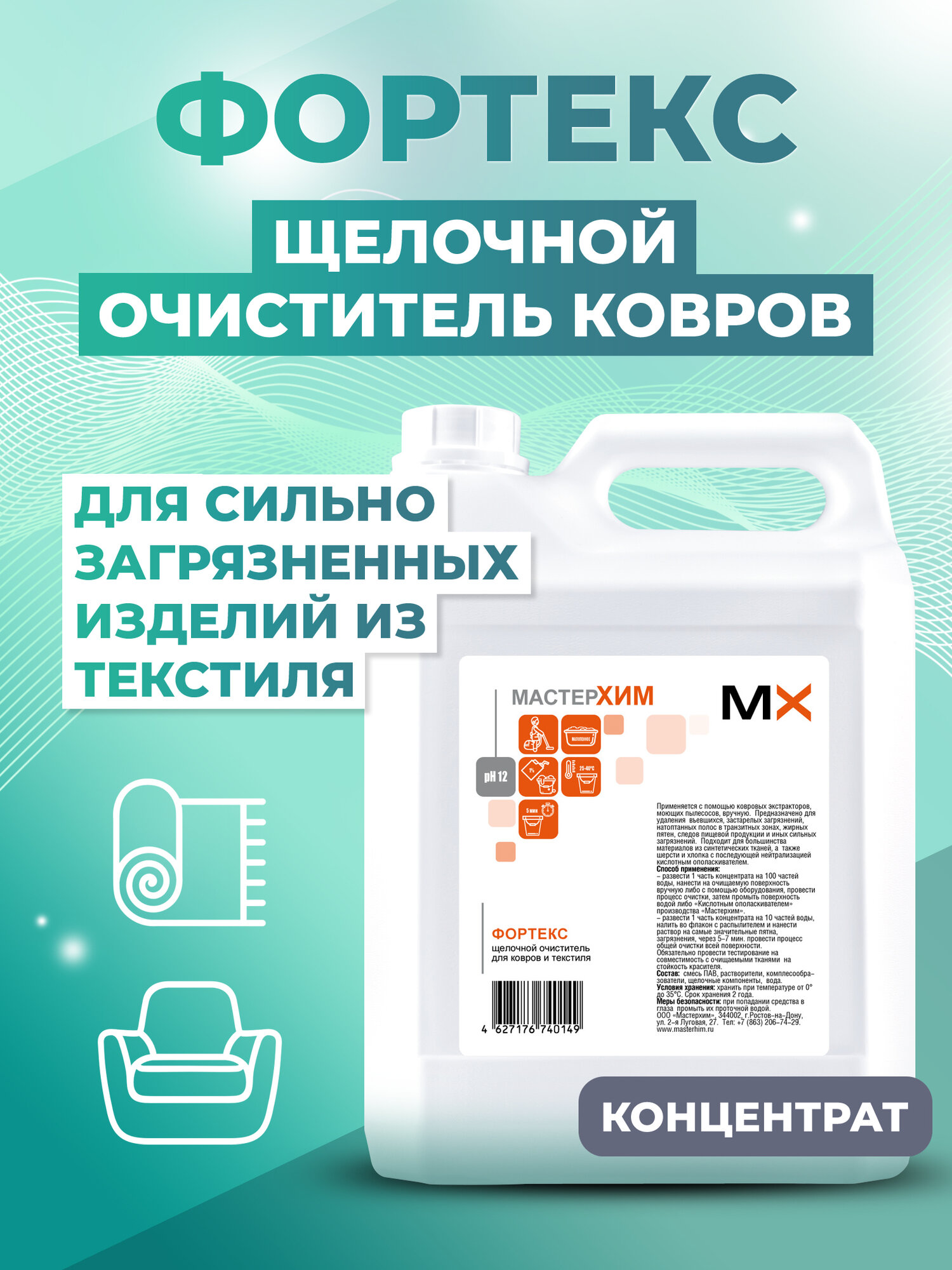 Щелочной концентрат для очистки сложных загрязнений на коврах и мебели мастерхим фортекс 5 кг 044ЩБп5