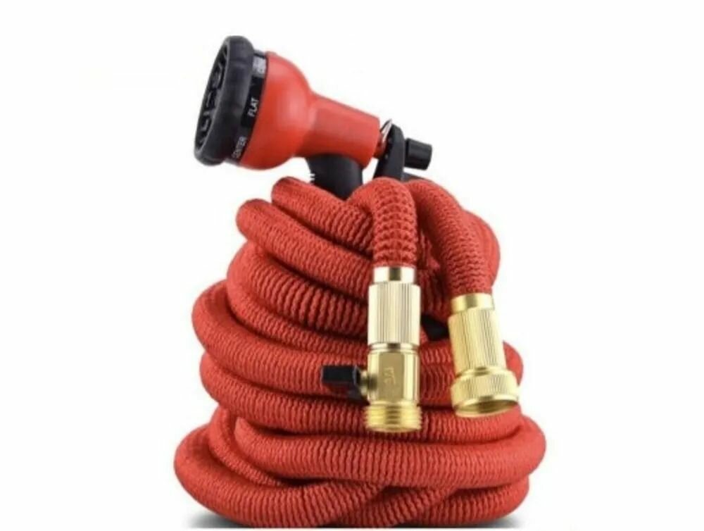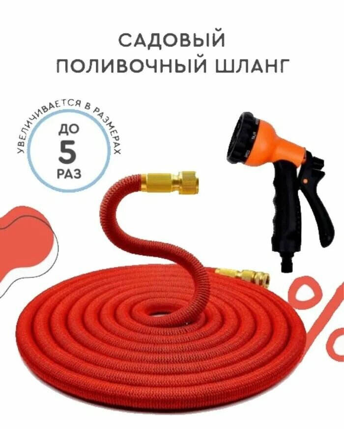 Шланг садовый растягивающийся 50 метров для полива с распылителем 50 метров красный с металлическим соединением
