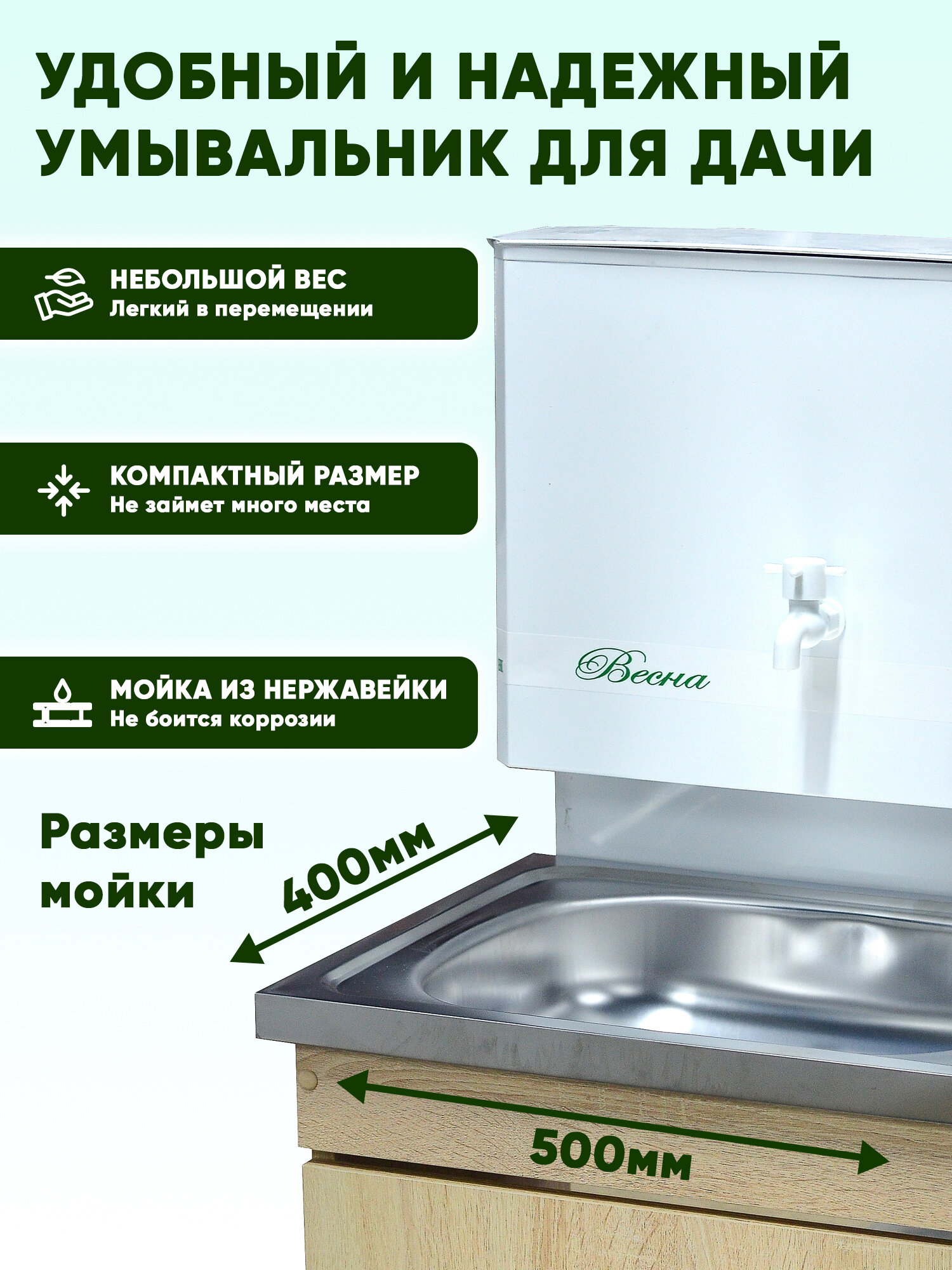 Умывальник дачный "Весна" с подогревом, тумба из ЛДСП, нержавеющая мойка интересное: