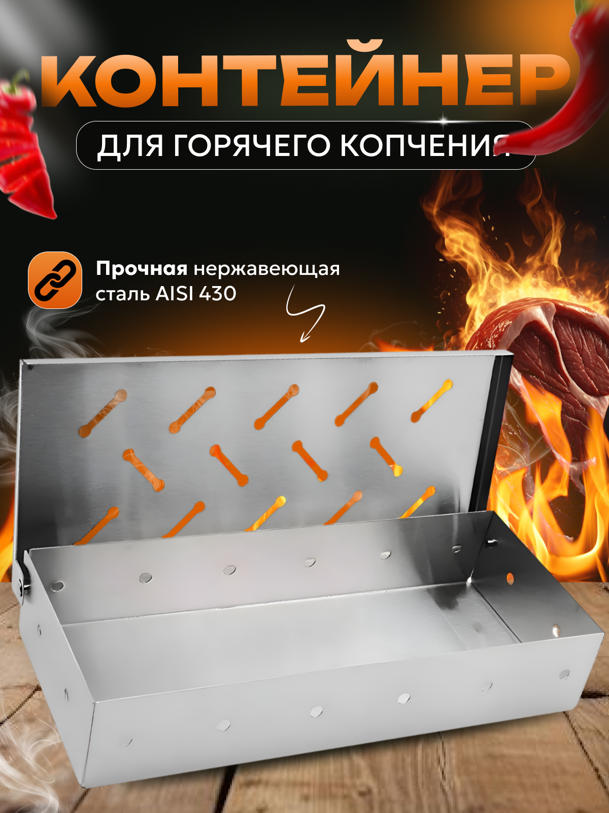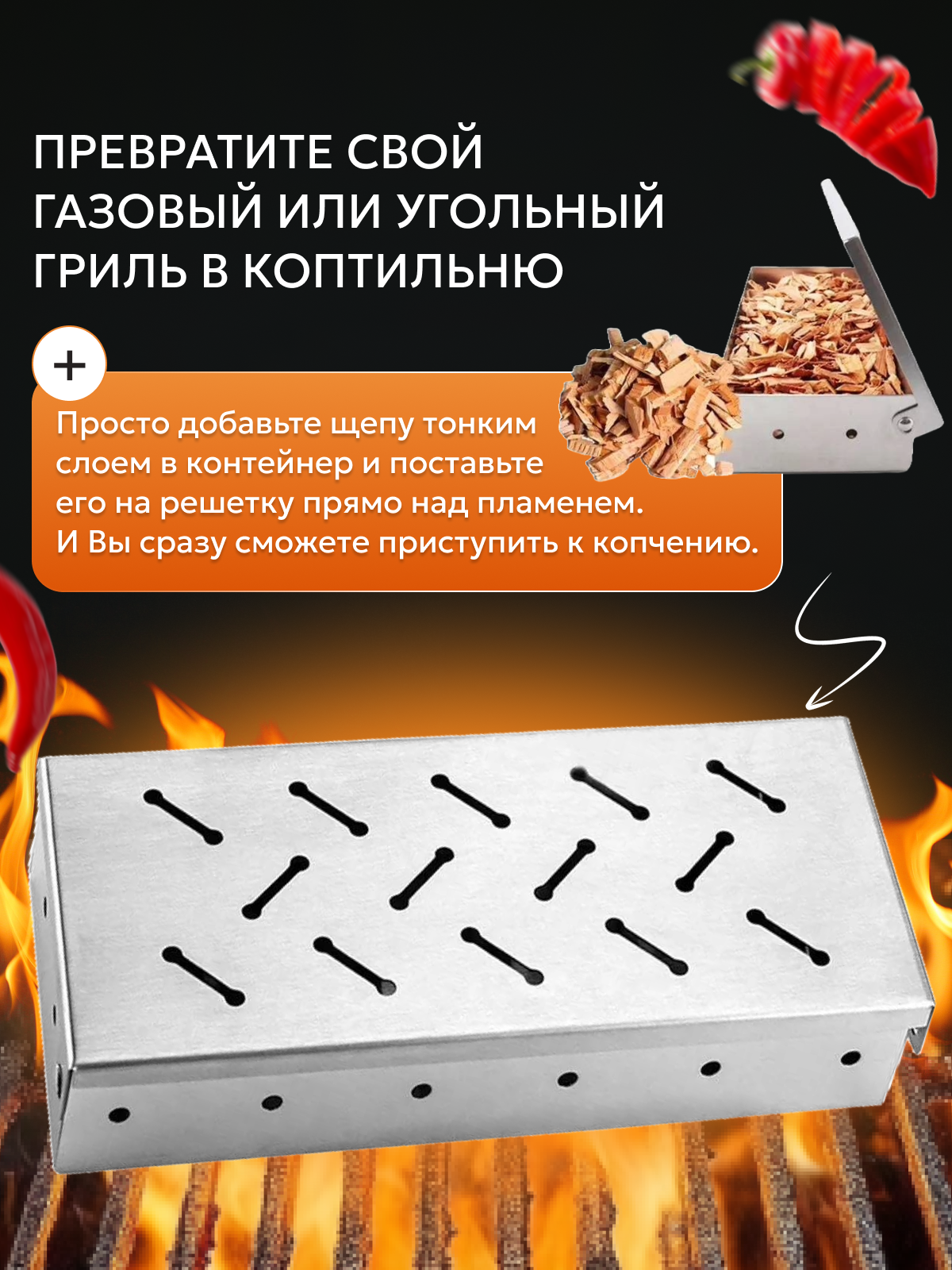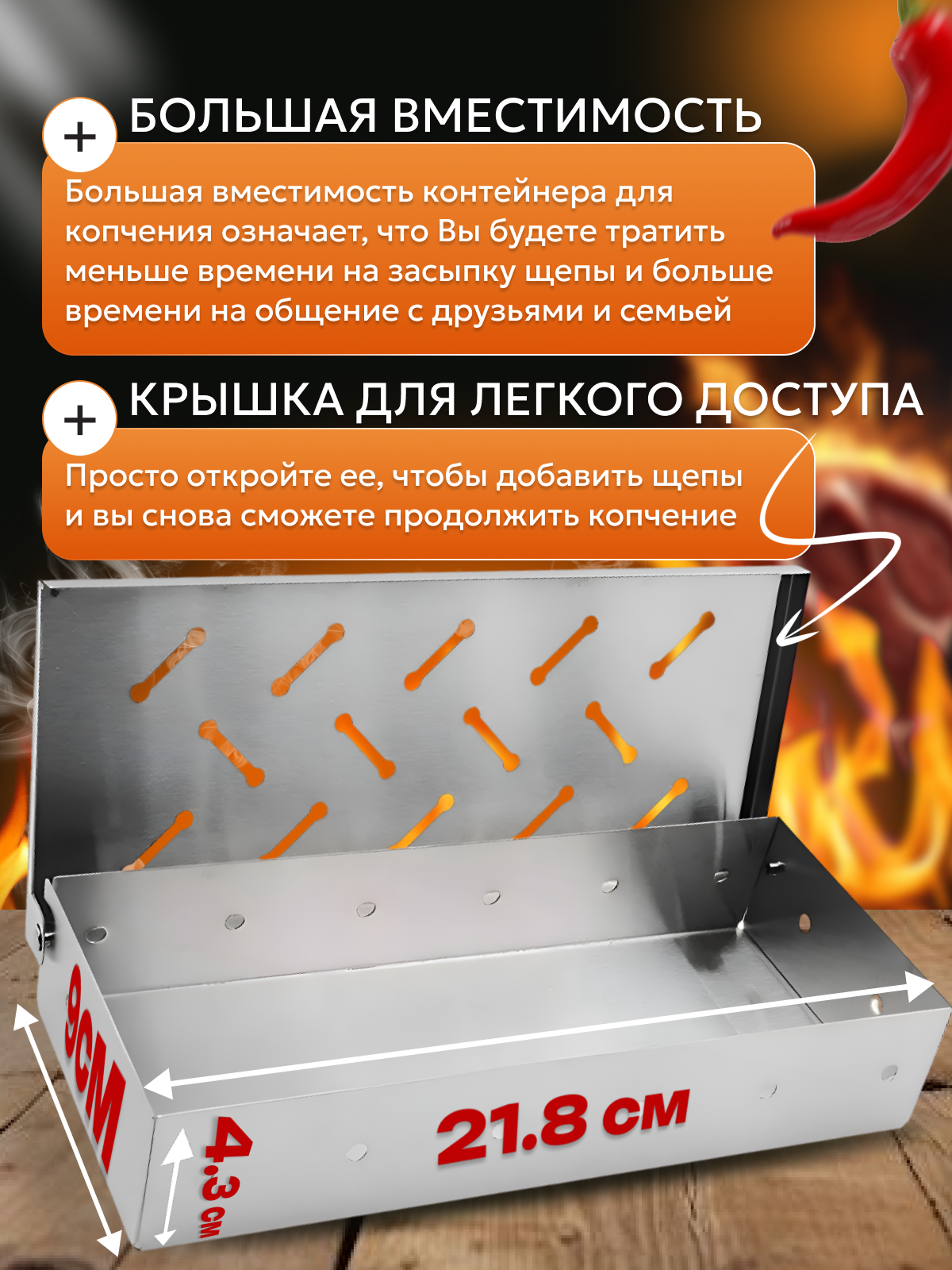 | Дополнительная информация | контейнер для щепы; копчение на щепе |