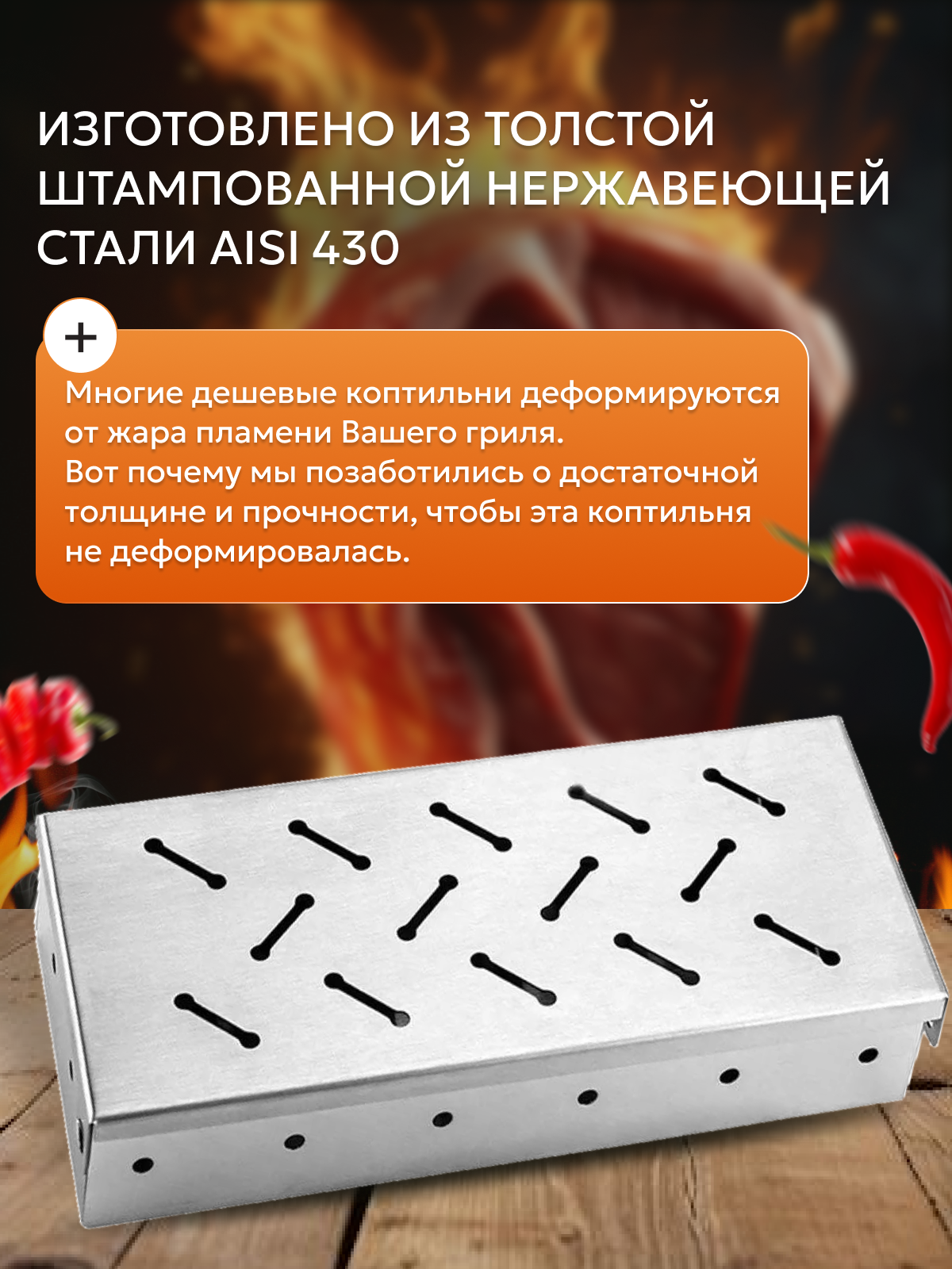 Контейнер коптильня для щепы Prime Grill, для газового/угольного гриля, металлический для горячего копчения интересное: