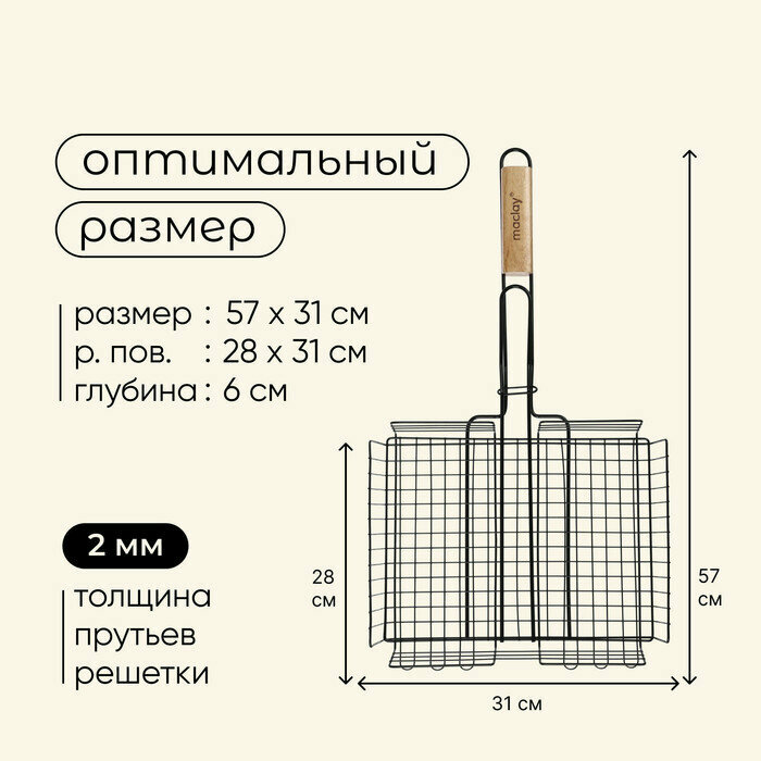 Решетка гриль Maclay, нержавеющая сталь, 57 х 31 х 28 см, глубина 6 см 10145893