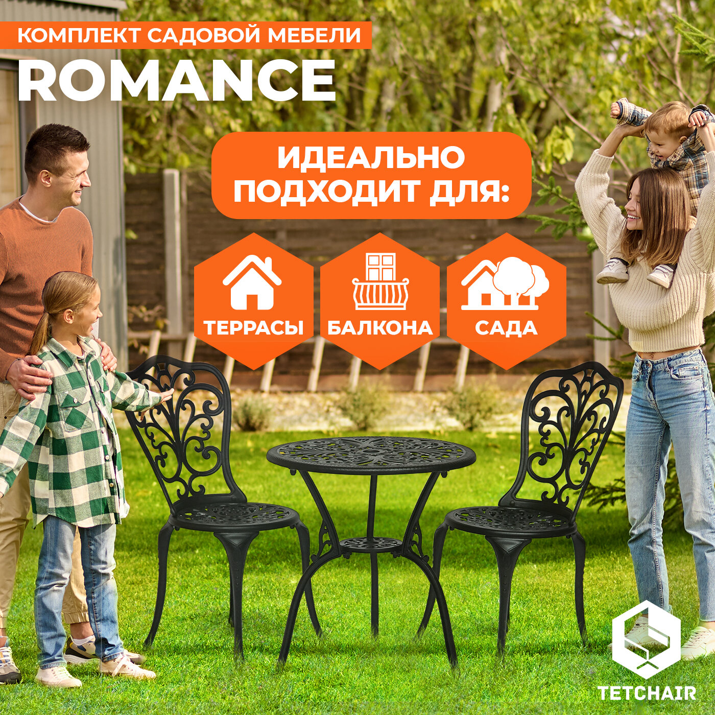 Комплект мебели Tetchair Romance (стол +2 стула), черный интересное: