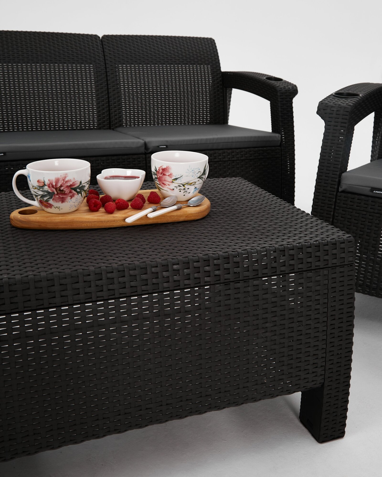 Комплект садовой мебели HomlyGreen Set 3+1+1+Кофейный столик+подушки серого цвета