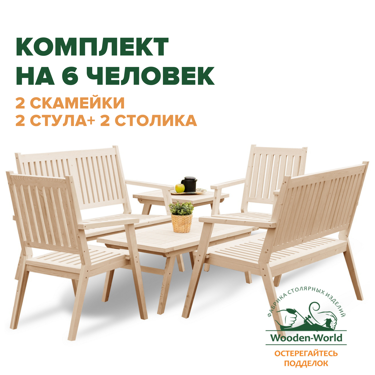 Wooden-World Комплект садовой мебели "на 8 человек" складной деревянный (Стол, Скамейки, Стулья)