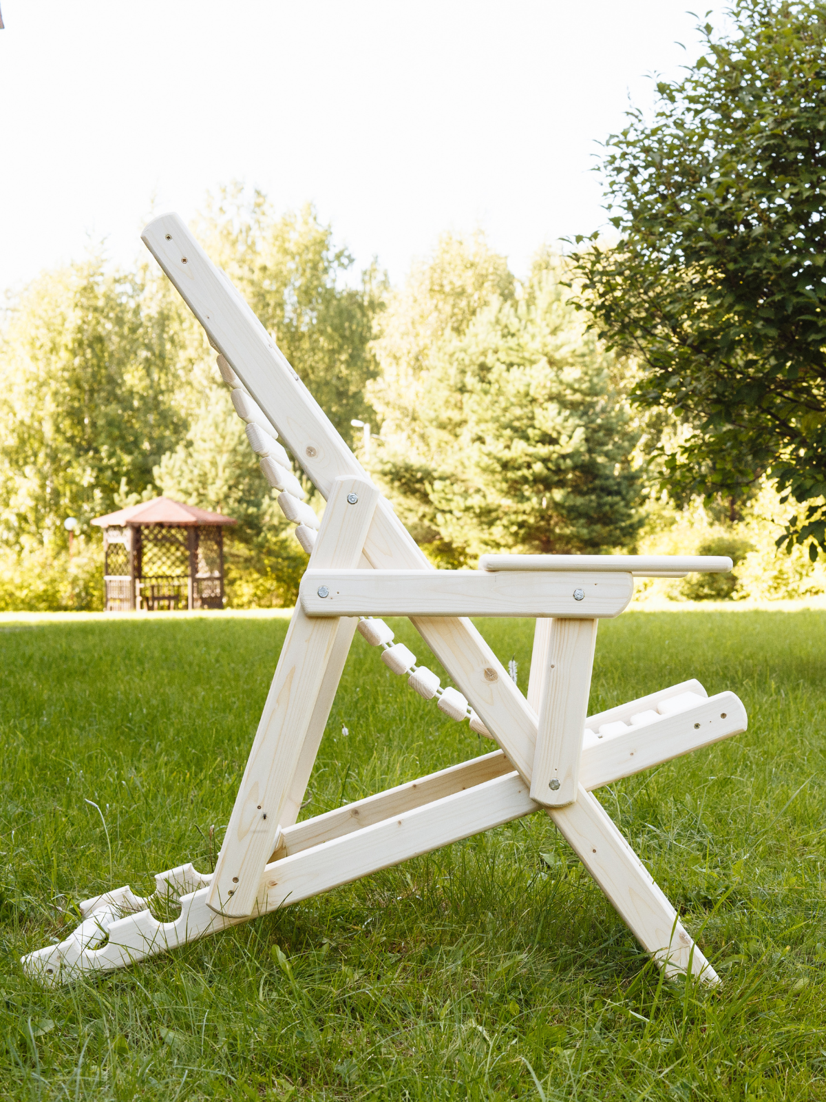 Шезлонг для дачи деревянный с подлокотниками