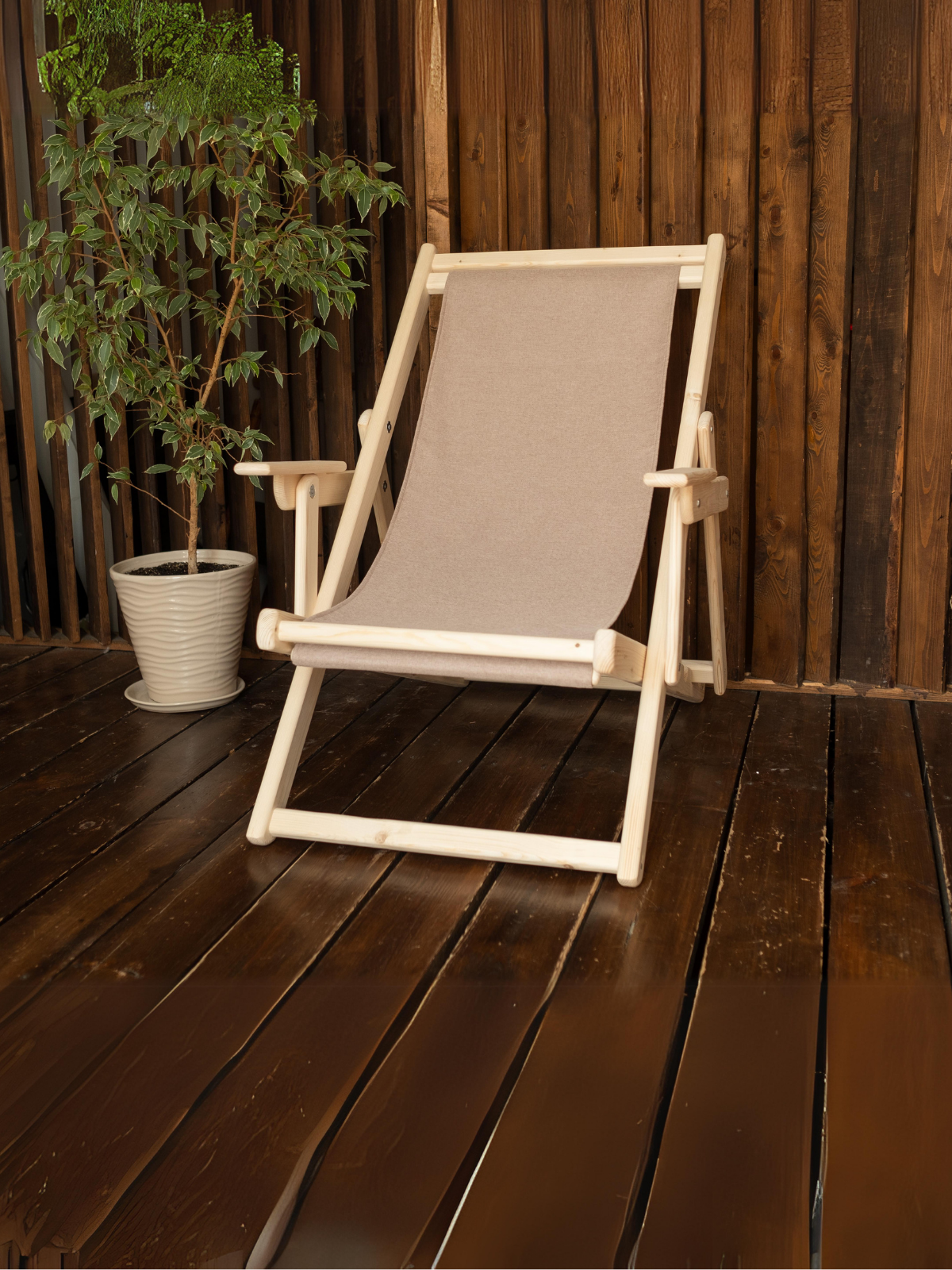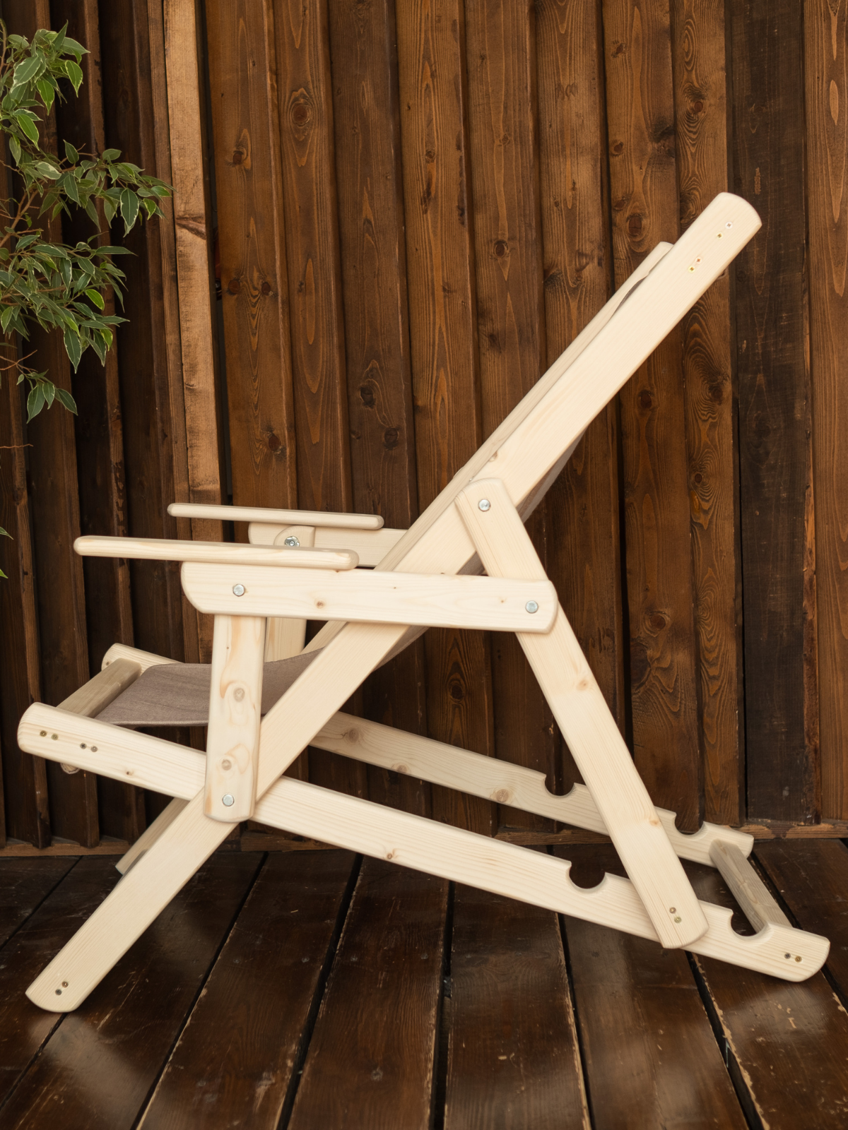 Шезлонг для дачи деревянный с подлокотниками