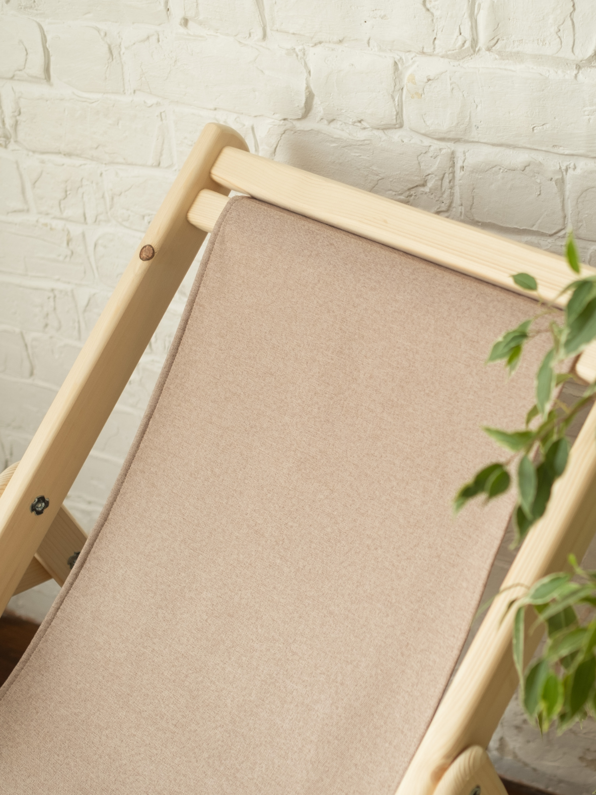 Шезлонг с бежевой тканью, деревянный, складной