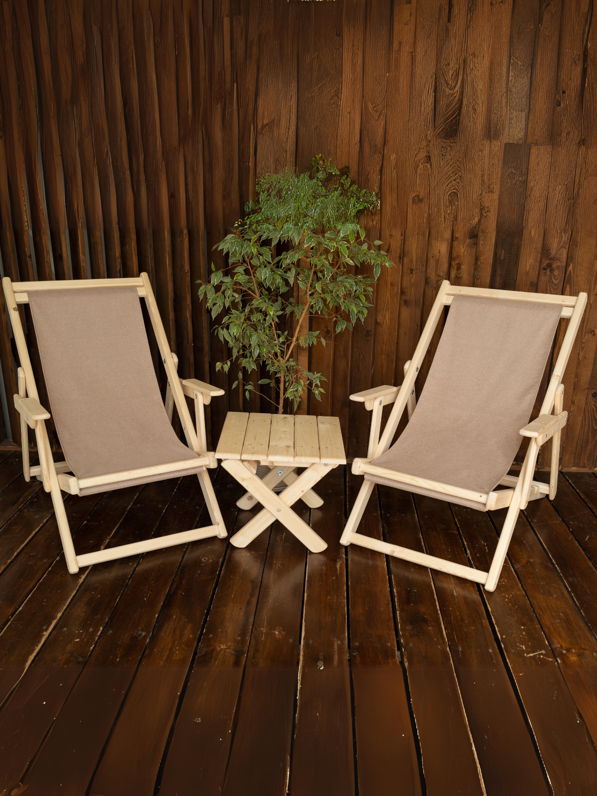 Шезлонги для дачи складные деревянные с подлокотниками со столиком комплект