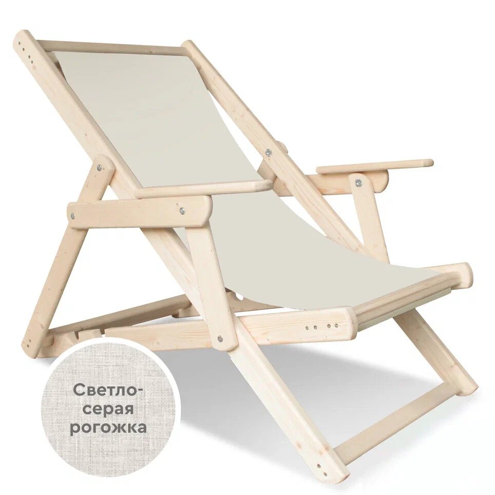 Купить Шезлонг для дачи складной деревянный с подлокотниками, ткань светло-серая