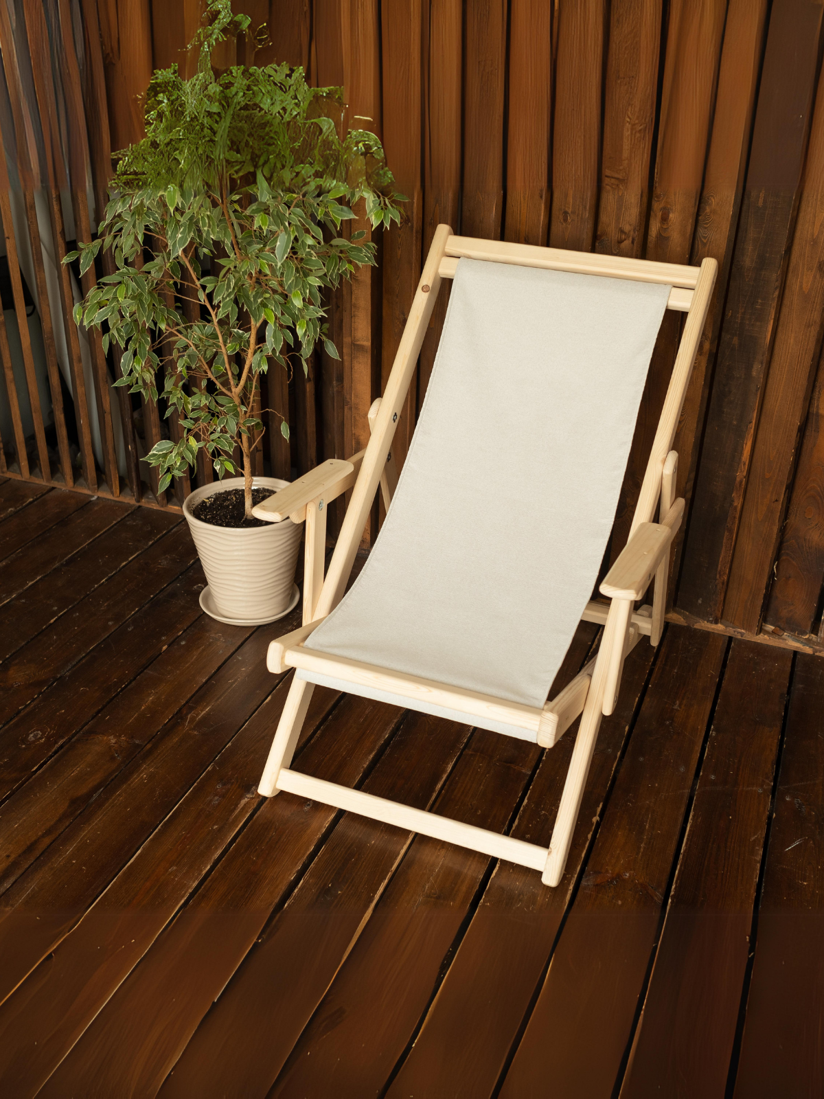 Шезлонг для дачи складной деревянный, ткань бежевая
