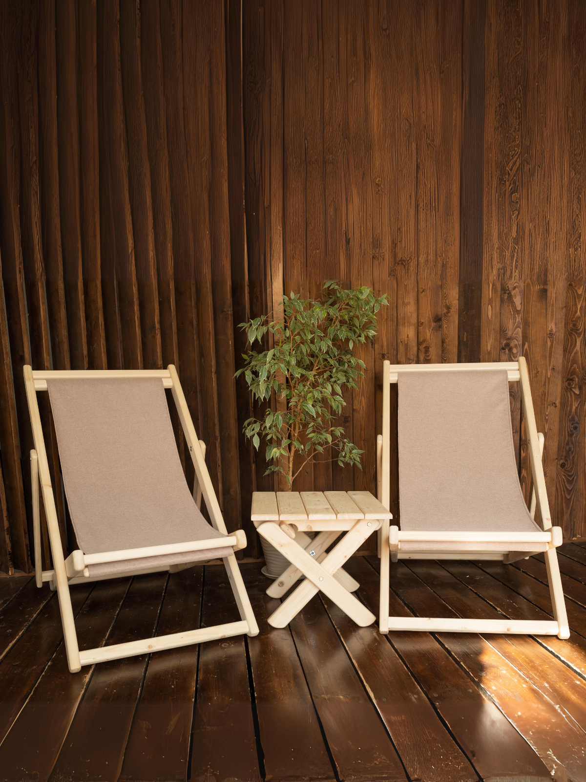 СохранитьШезлонги для дачи складные деревянные со столиком комплект, ткань бежевая интересное: