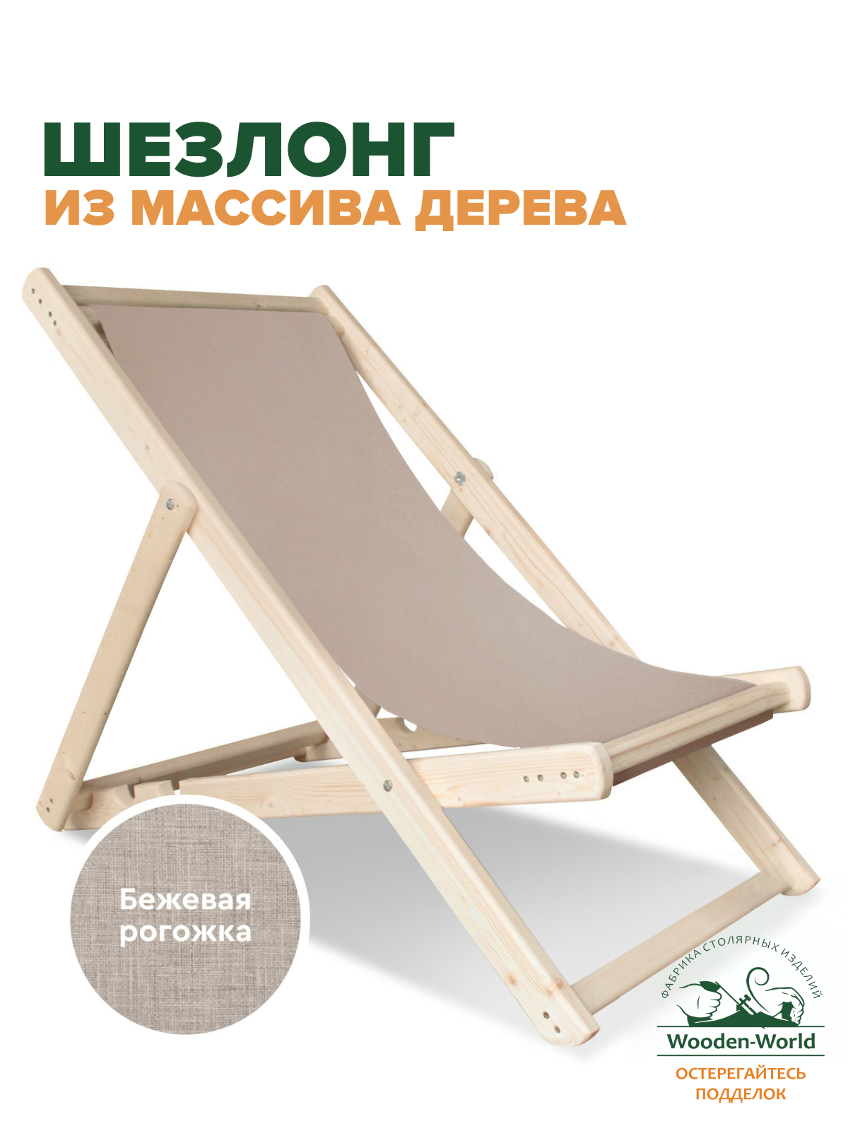 Купить Шезлонг для дачи складной деревянный, ткань бежевая