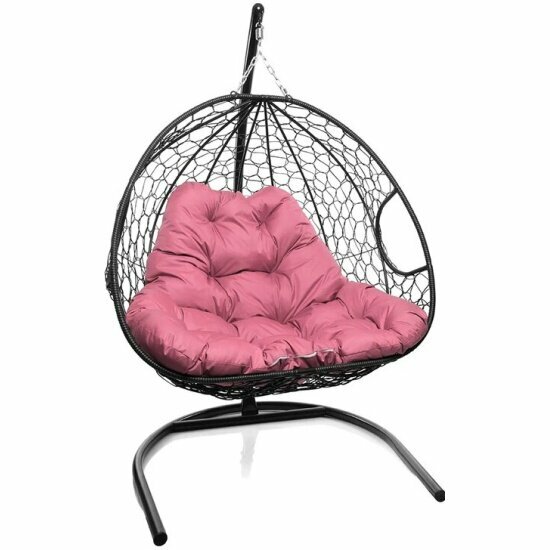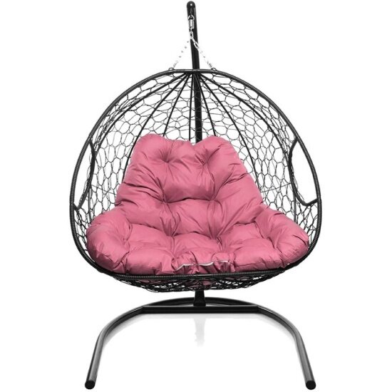Подвесное кресло M-group для двоих с ротангом чёрное розовая подушка