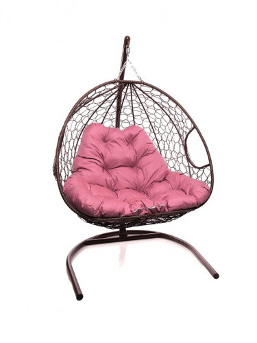 Подвесное кресло M-group для двоих с ротангом коричневое розовая подушка