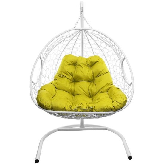 Подвесное кресло M-group для двоих с ротангом белое жёлтая подушка