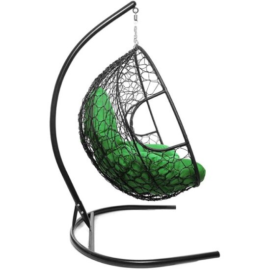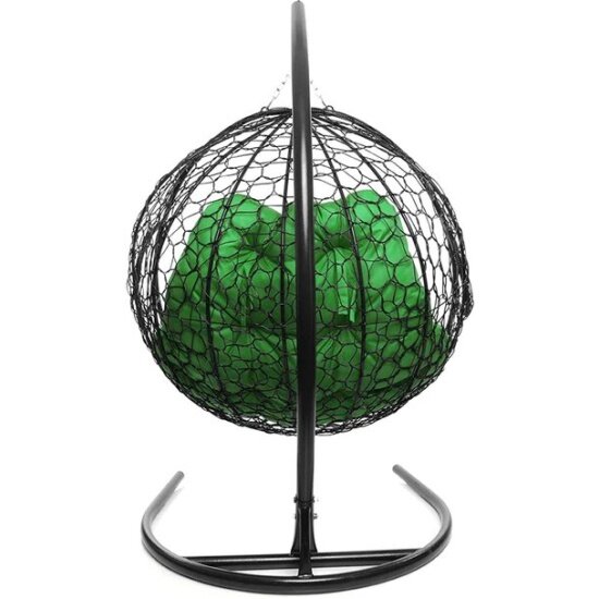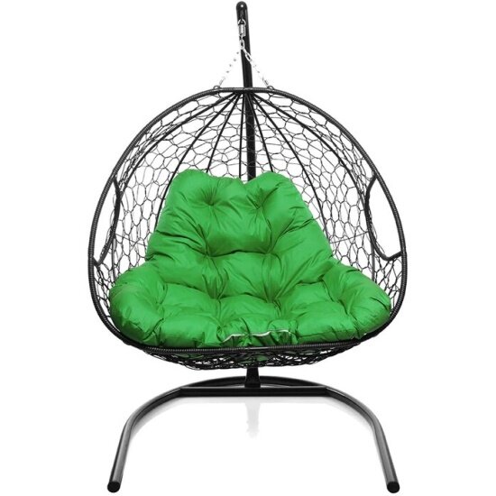 Купить Подвесное кресло кокон двухместное M-group для двоих с ротангом чёрное+зелёная подушка