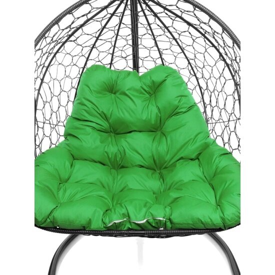 Подвесное кресло из ротанга "Для двоих" черное с зеленой подушкой M-GROUP