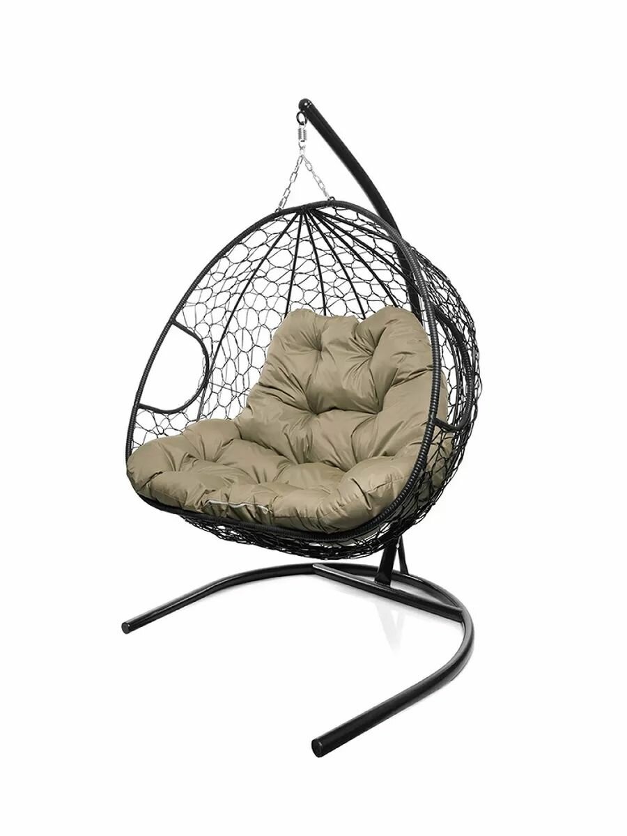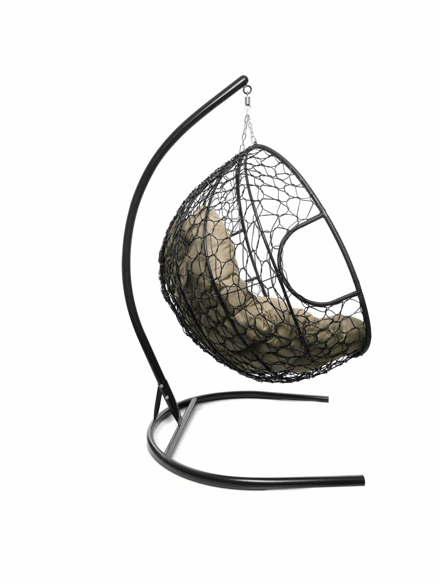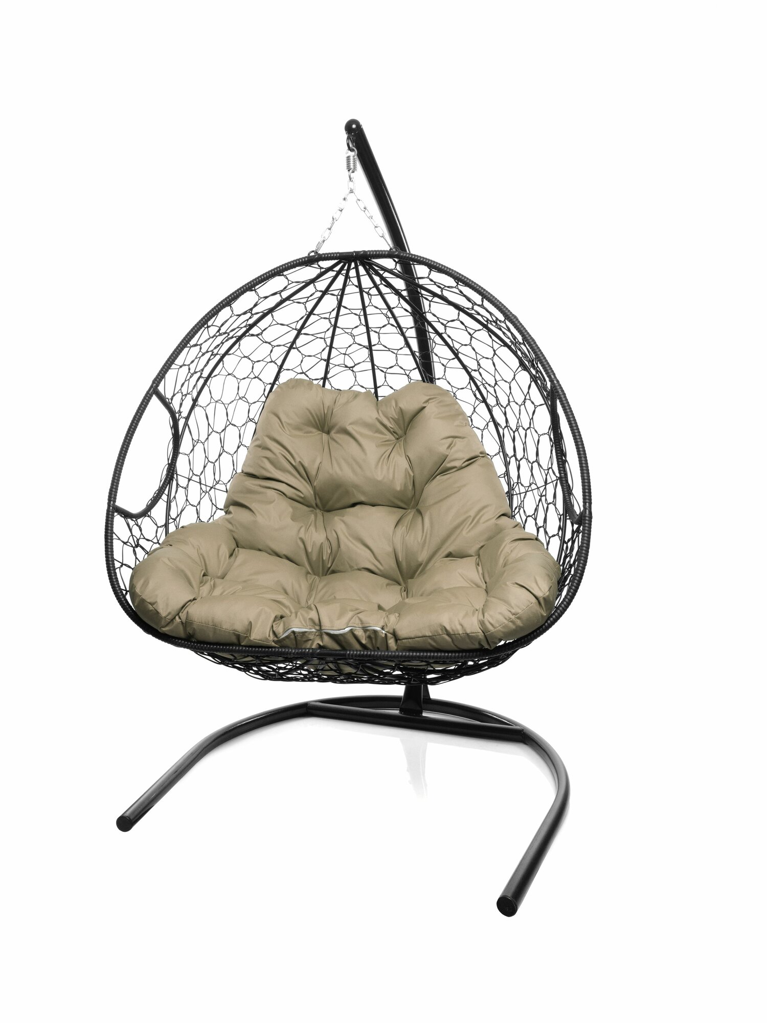 Подвесное кресло для двоих с ротангом чёрное, бежевая