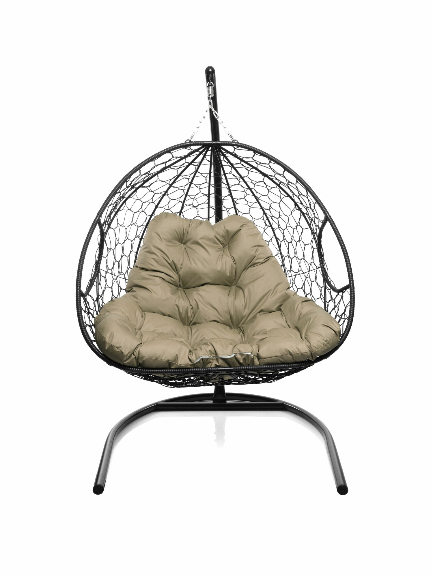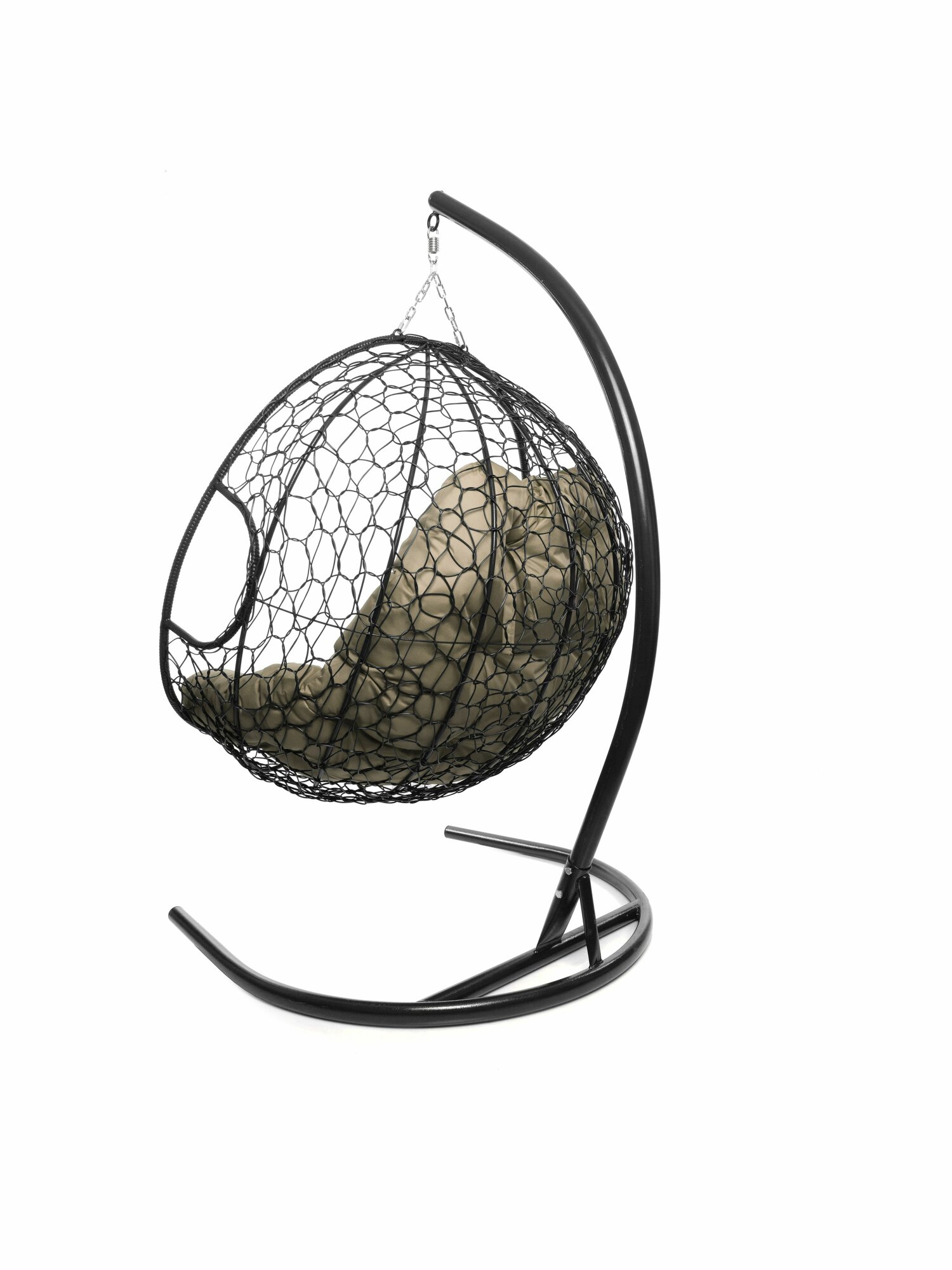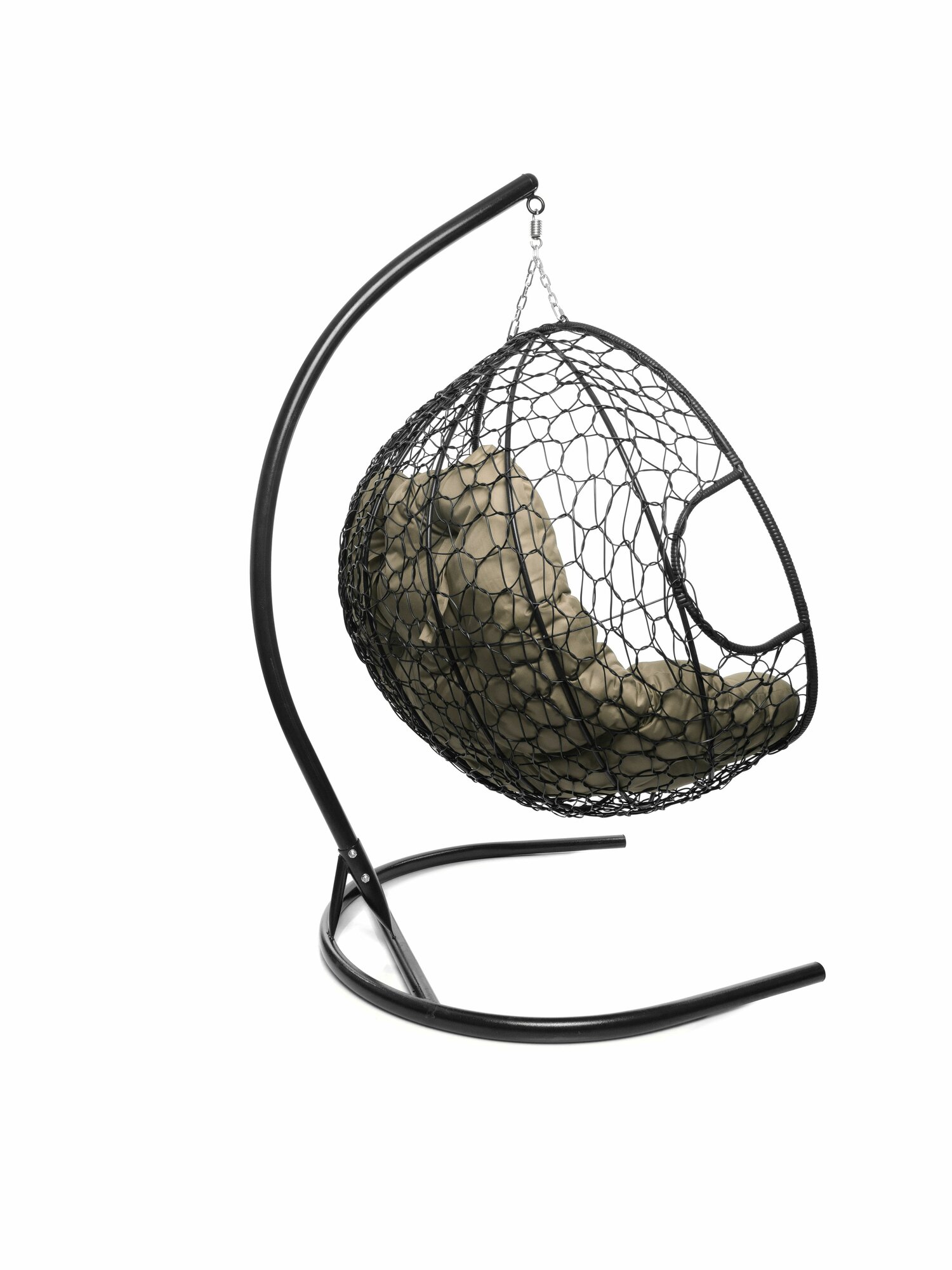 Подвесное кресло для двоих с ротангом чёрное, бежевая
