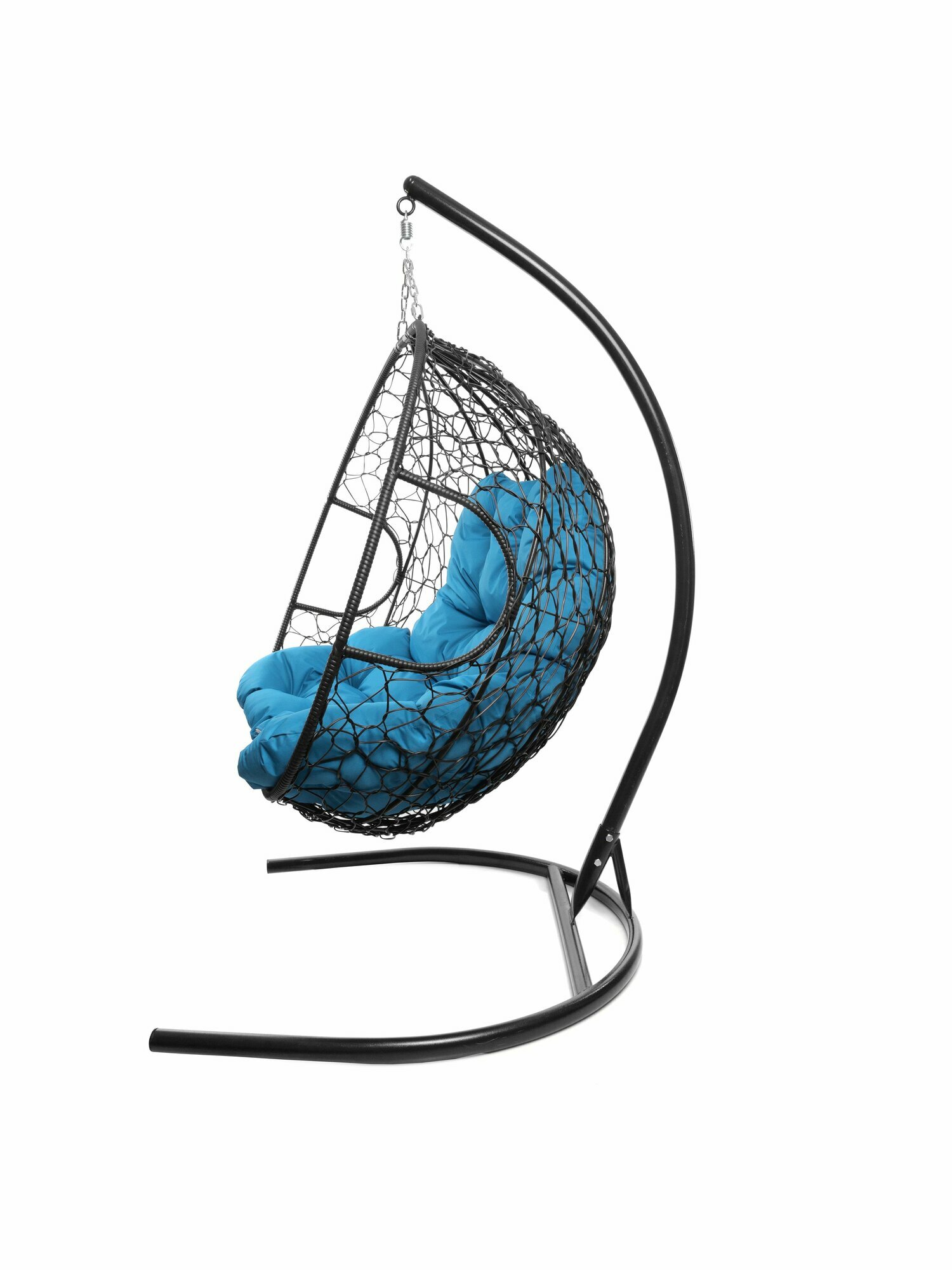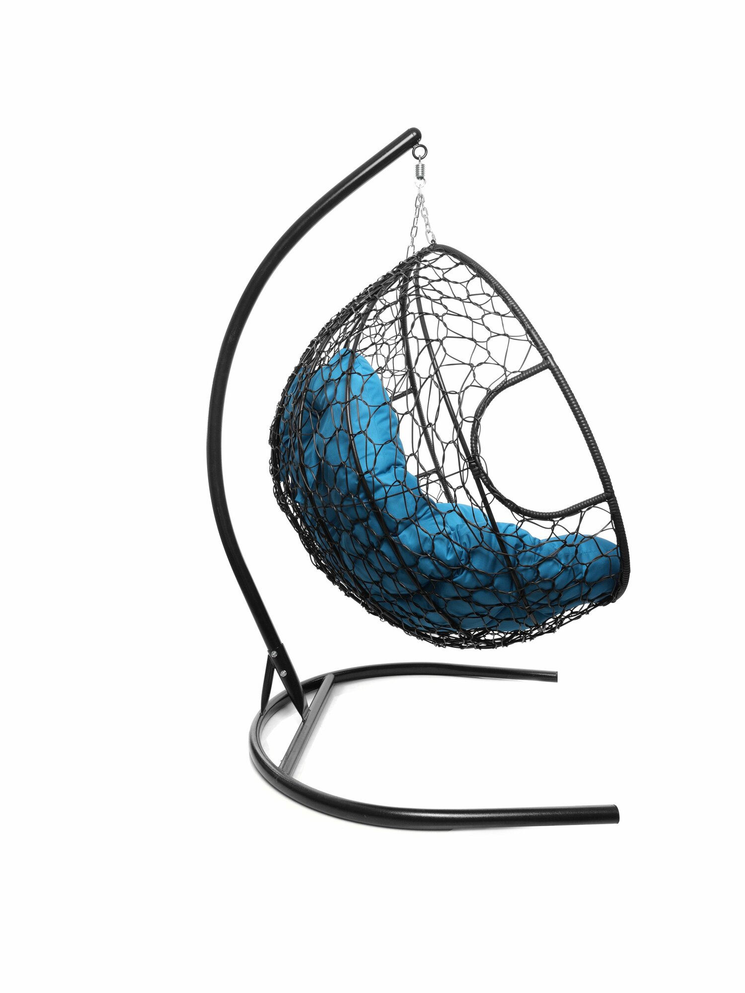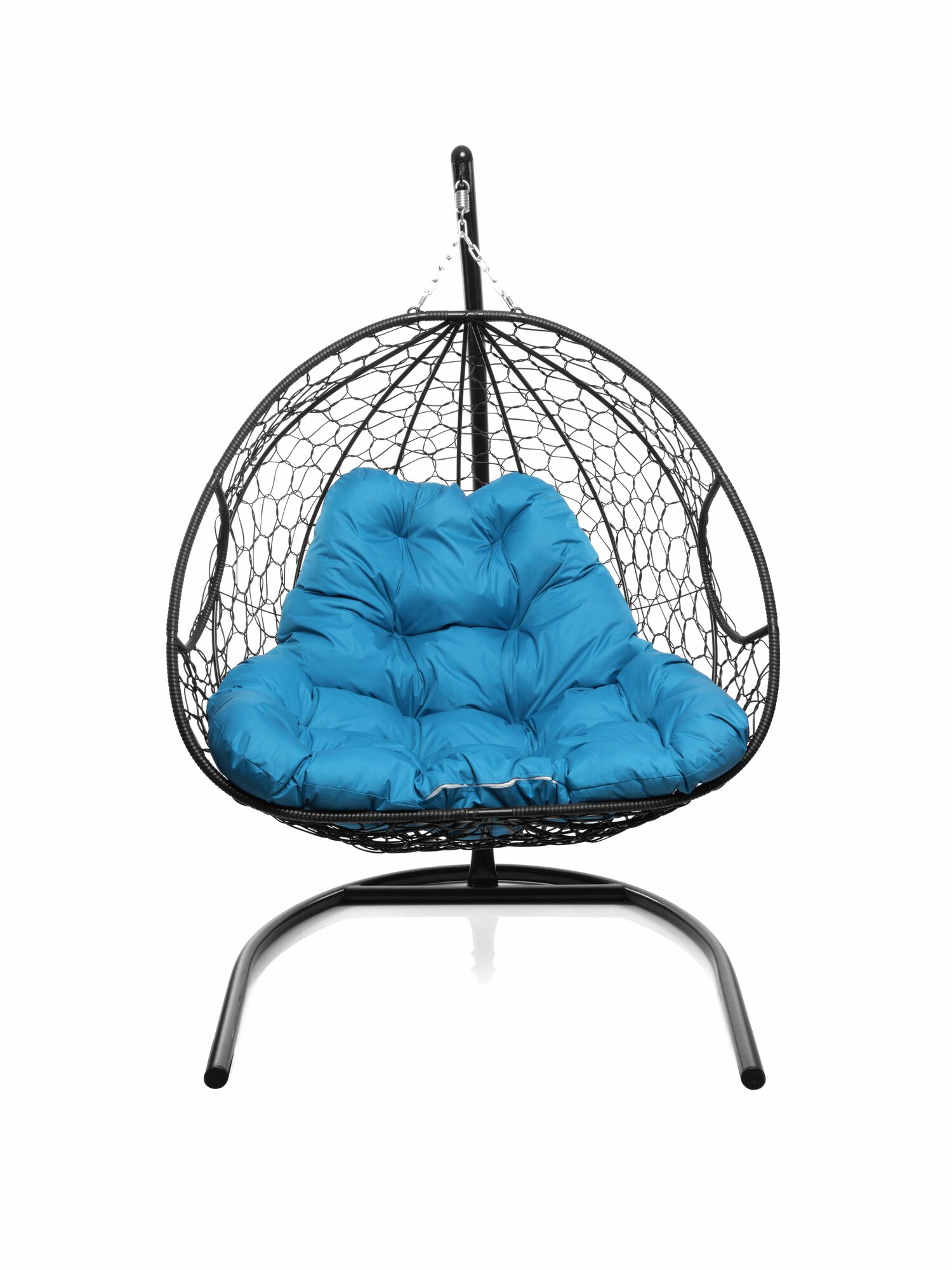 Подвесное кресло для двоих с ротангом чёрное, голубая