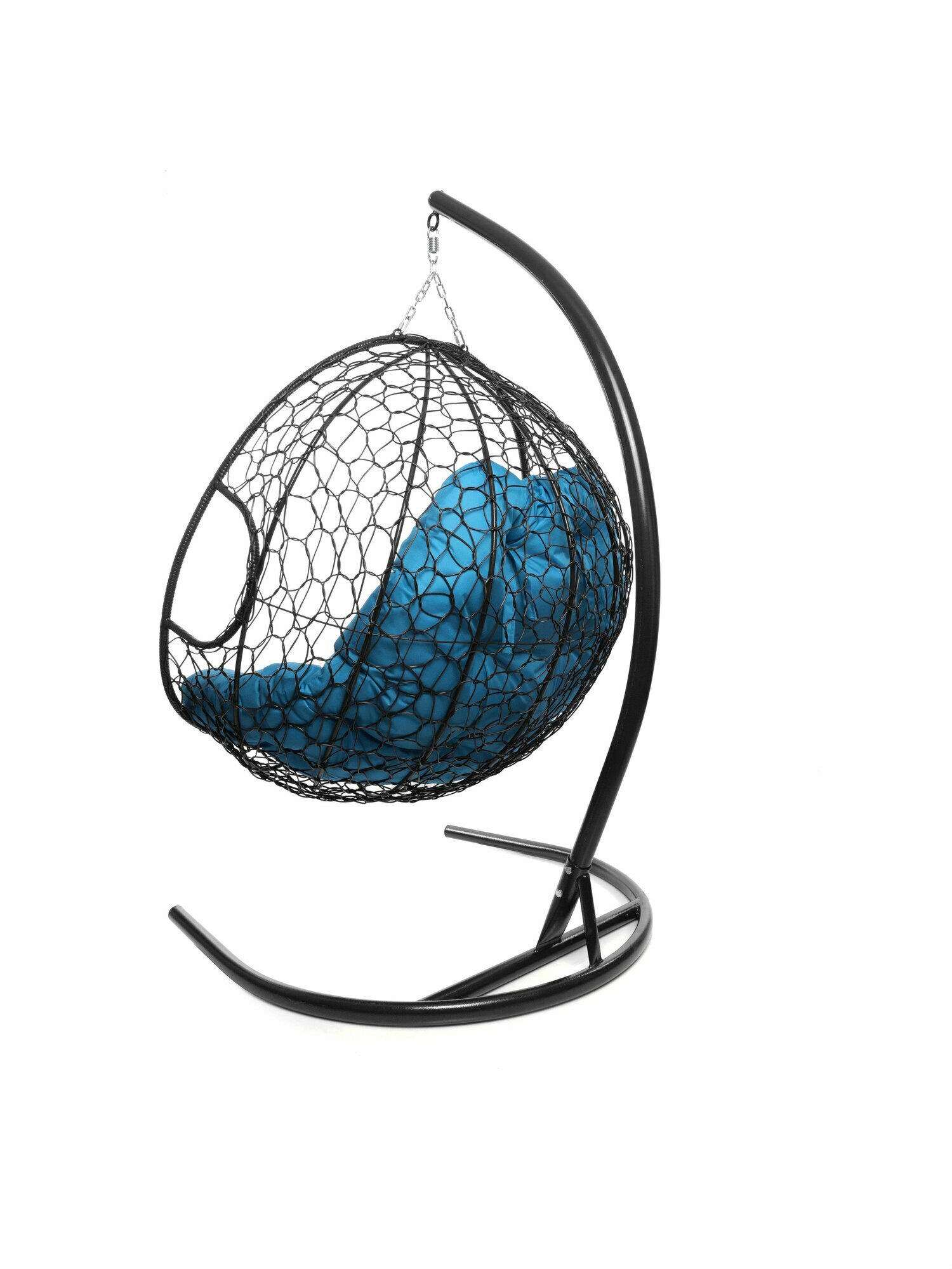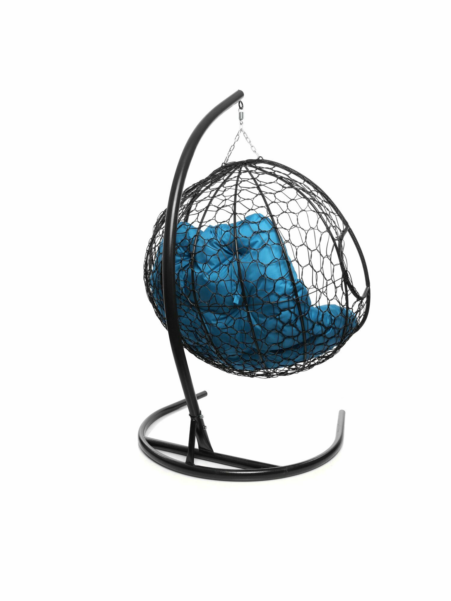 Подвесное кресло из ротанга "Для двоих" черное с голубой подушкой M-GROUP