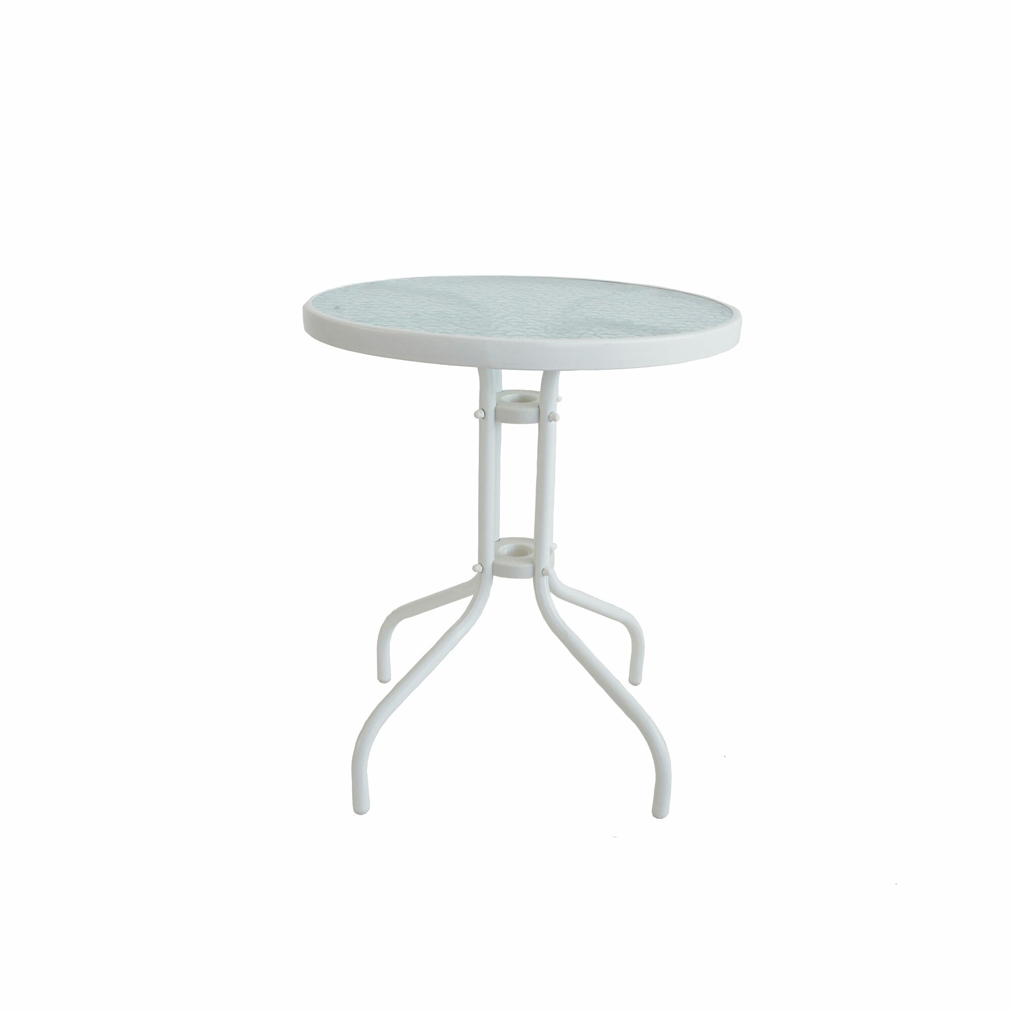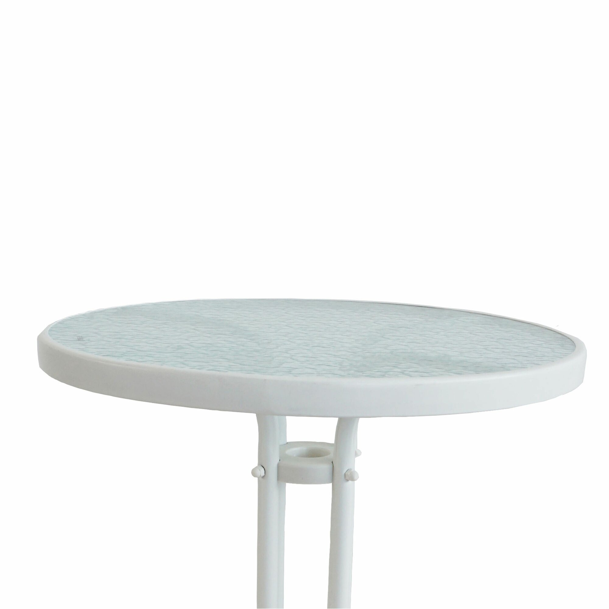 Купить Стол садовый круглый стеклянный 60х60х70 см, закаленное стекло, каркас металл, для дома дачи и сада, белый, АМИ МЕБЕЛЬ
