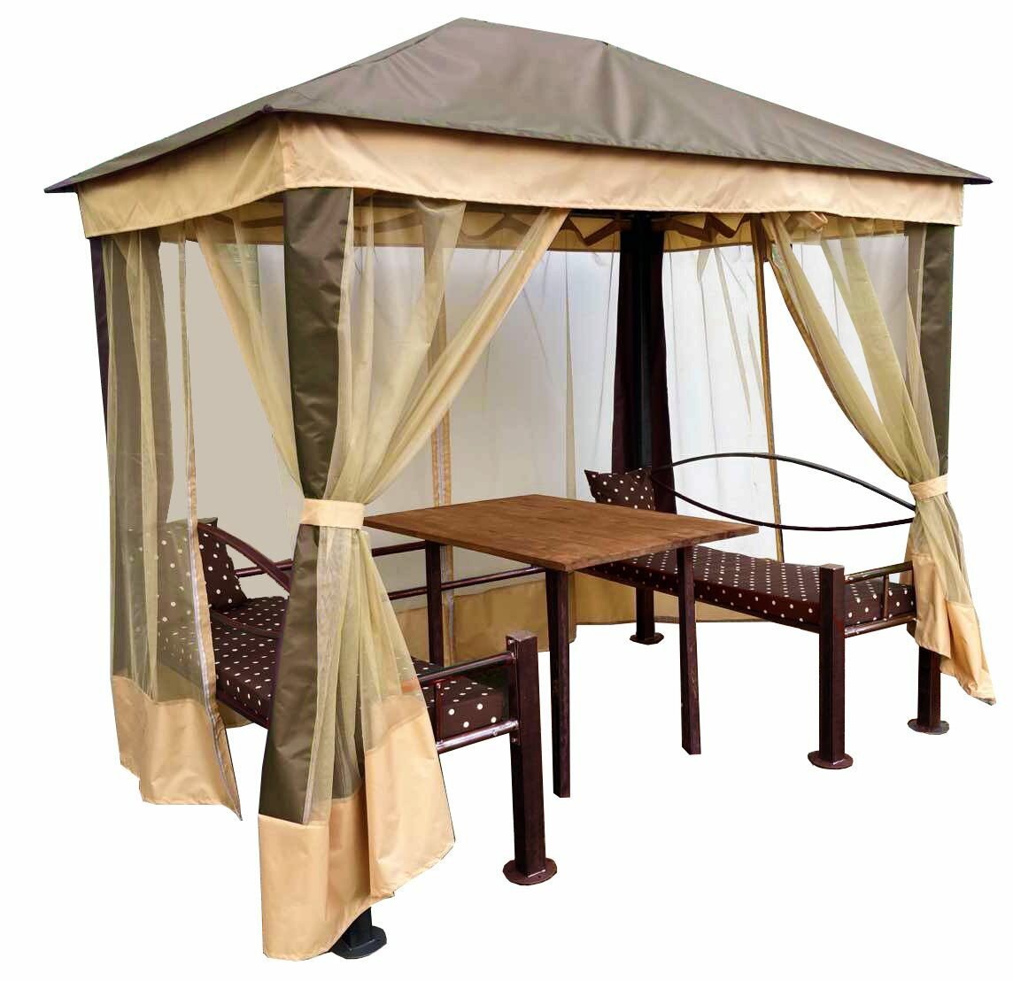 Шатер садовый Мебельторг Визит Бежевый/Коричневый Размеры: Высота 2350мм Глубина 1750мм Ширина 2550мм интересное: