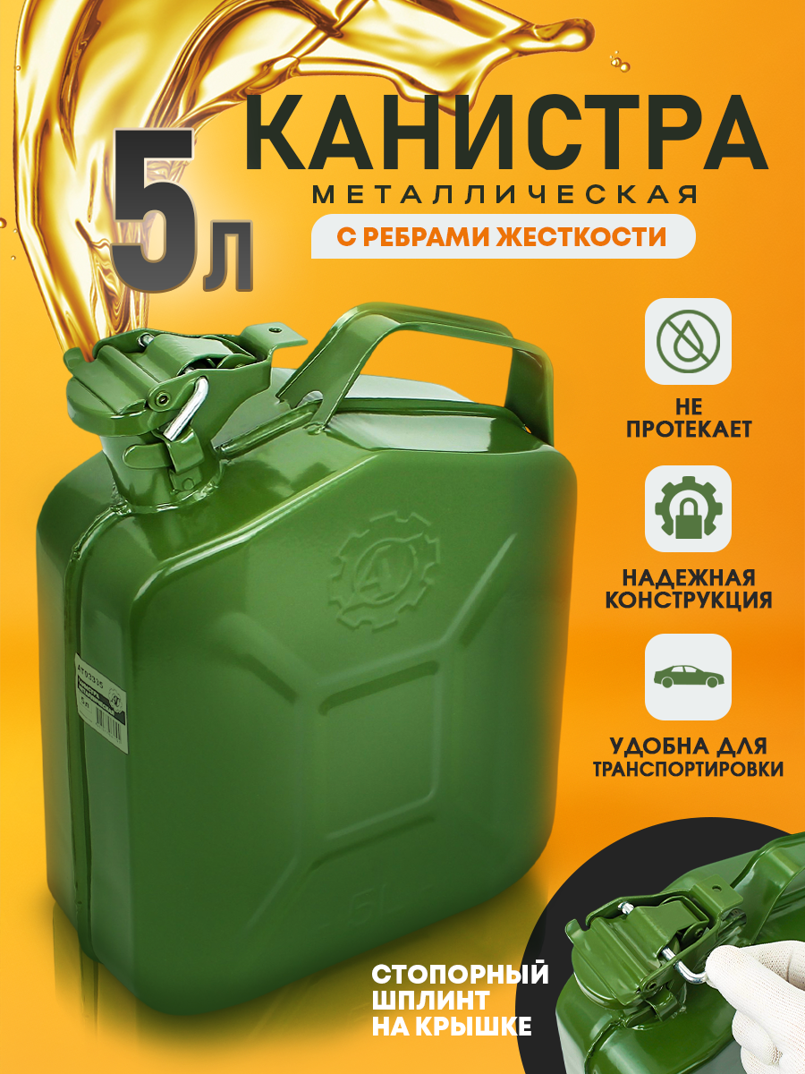 Купить Канистра металлическая 5 л (с ребрами жесткости и стопорным шплинтом на крышке)