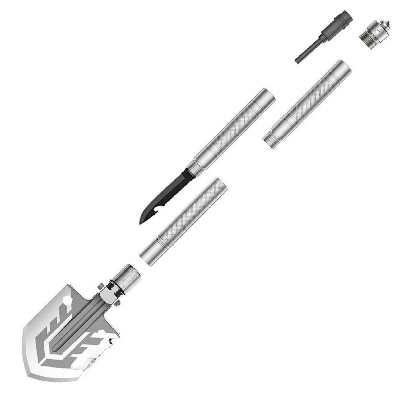 | Дополнительная информация | В комплекте лопата с тремя телескопическими черенками , нож, компас , сктеклобит, две вечные спички (нужна заправка горючим средством) |