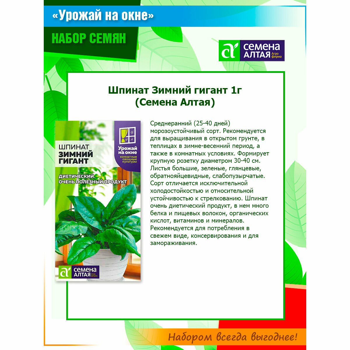 Купить Набор семян "Урожай на окне": кориандр (кинза) Янтарь, базилик Ред Рубин, шпинат Зимний гигант от Семена Алтая (3 пачки)