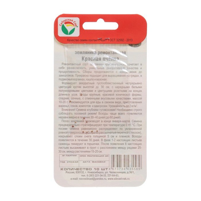 Семена Земляника Красная пчелка (Сибирский Сад) 10шт