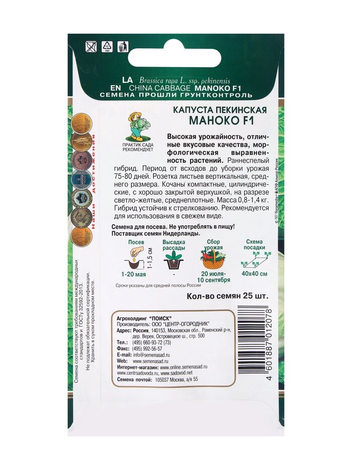 Семена Капуста пекинская Маноко F1 25шт Ранние (Поиск)