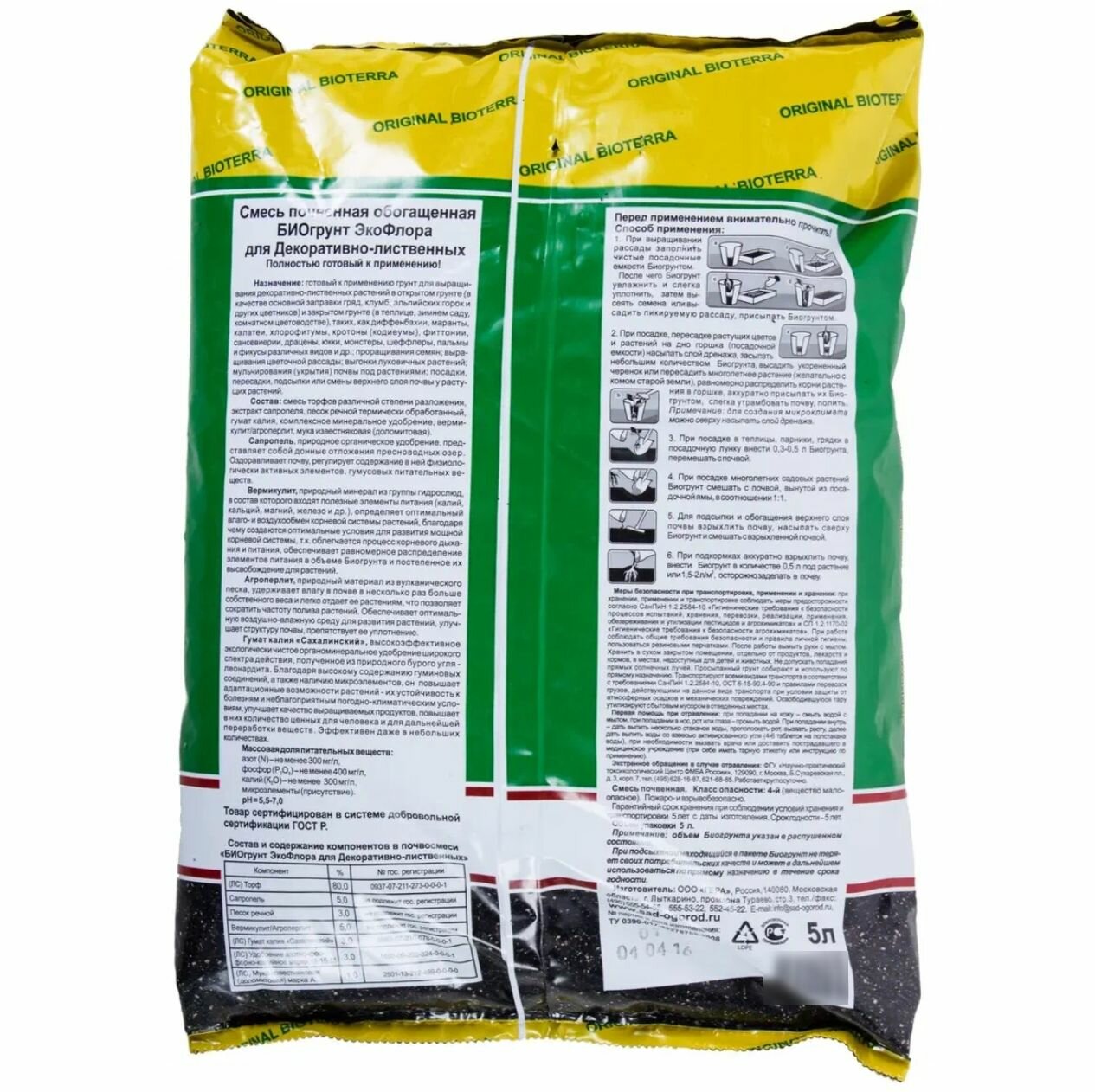 | Состав | Биогрунт Гера цветочный, 5 л, 0.5 кг |