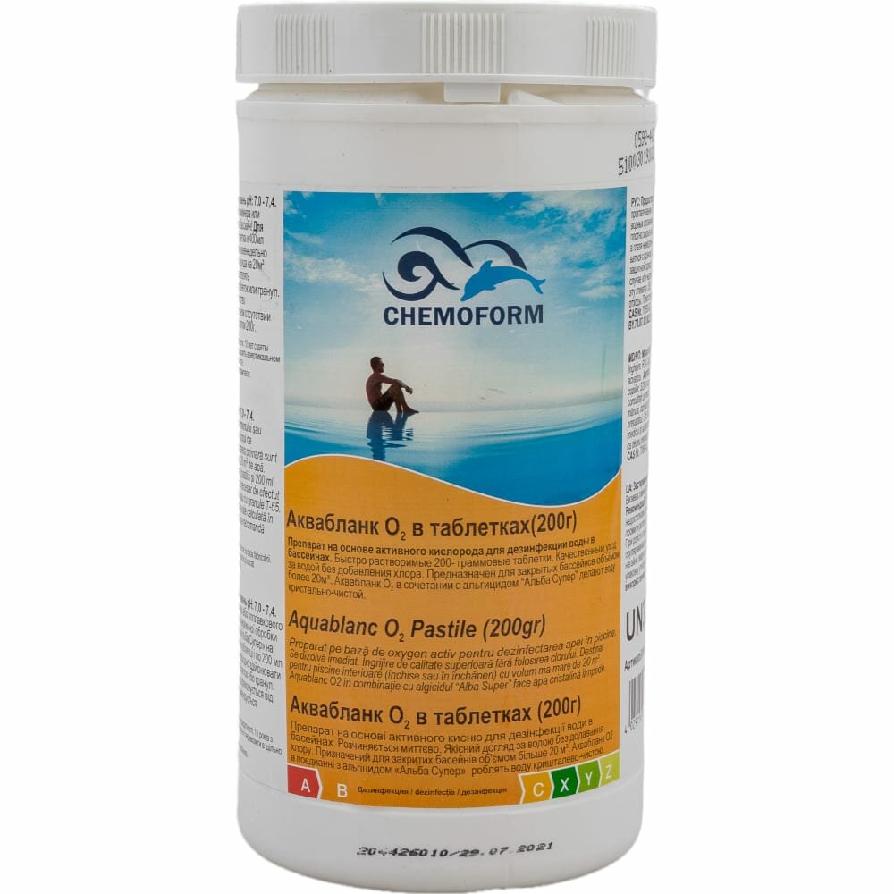 Активный кислород для дезинфекции воды в бассейнах Аквабланк О2 в таблетках (200 г) 1 кг 514727 Chem .