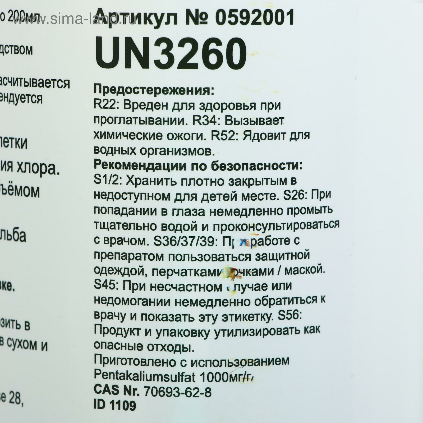 | Дополнительная информация | для дезинфекции воды в бассейнах объёмом более 20 м³ |