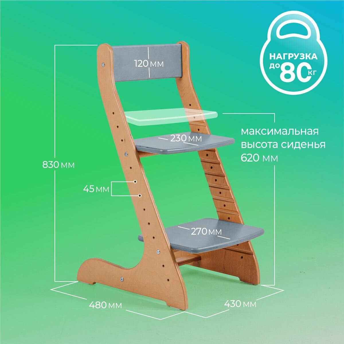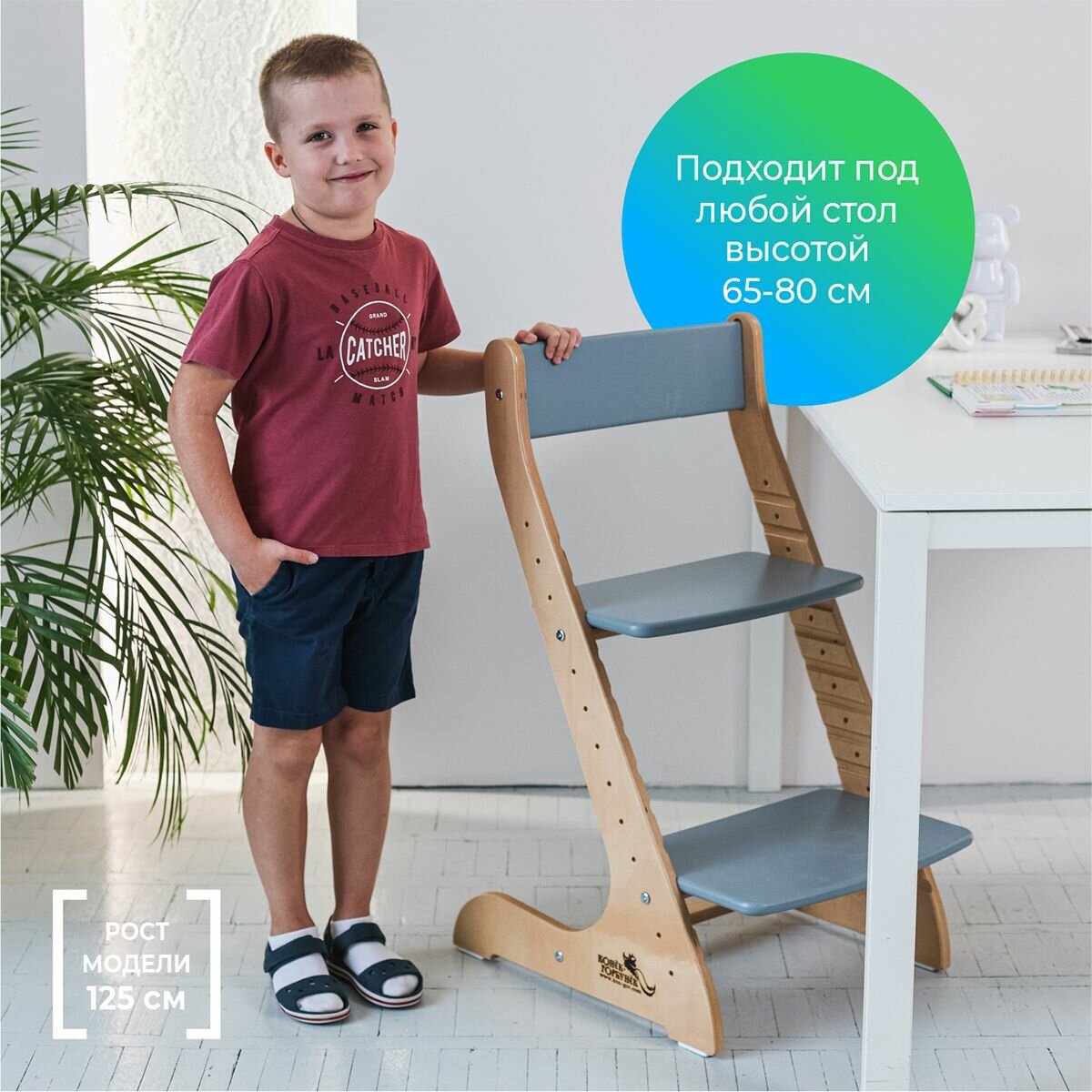 Растущий стул для детей, детский деревянный стульчик для школьника Конек Горбунек Стандарт, цвет Серый