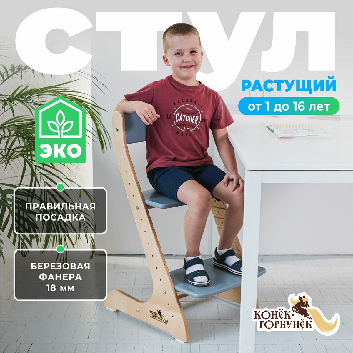 Растущий стул для детей и школьников Конек Горбунек Стандарт, для кормления детский, Лофт-2