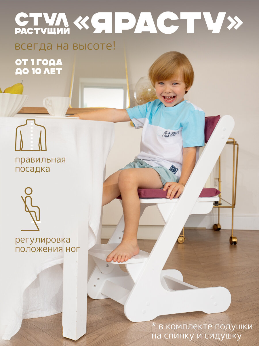 Купить Растущий детский стул Pappado "РАСТУЛЬЧИК", белый, с подушкой, нагрузка до 100кг