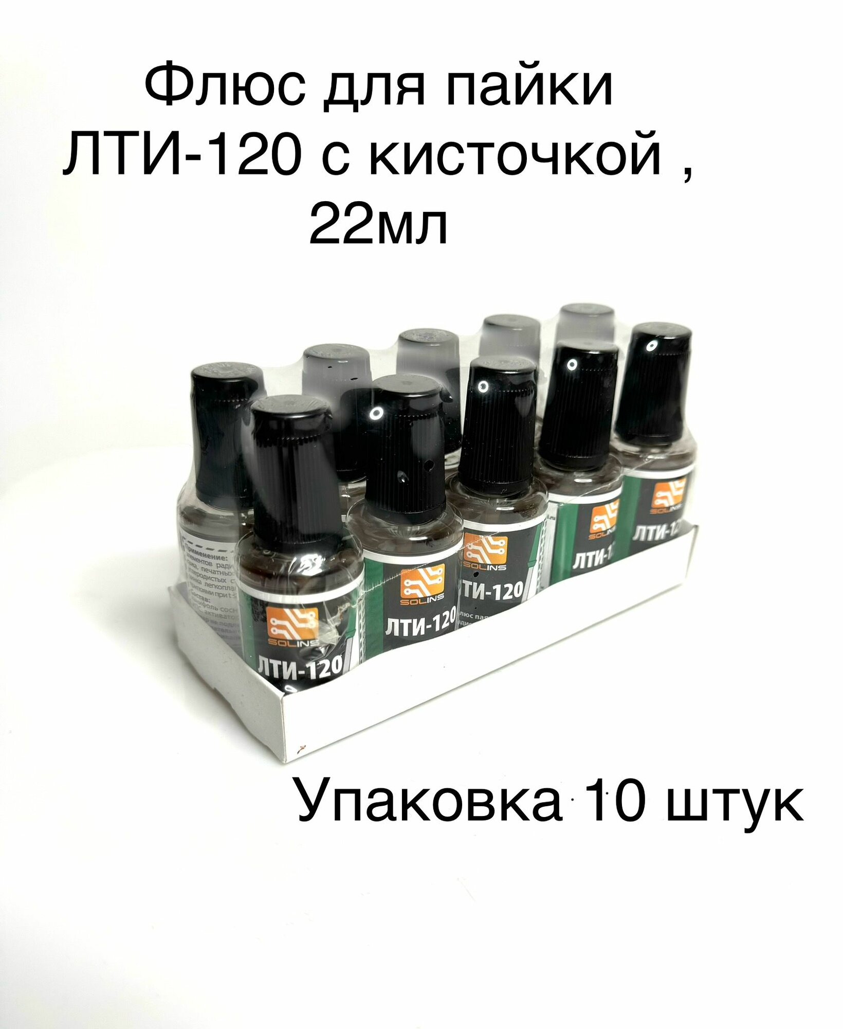 Купить Флюс для пайки "ЛТИ-120" Solins, канифоль, с кисточкой, ПЭТ флакон, 22мл, 10шт.