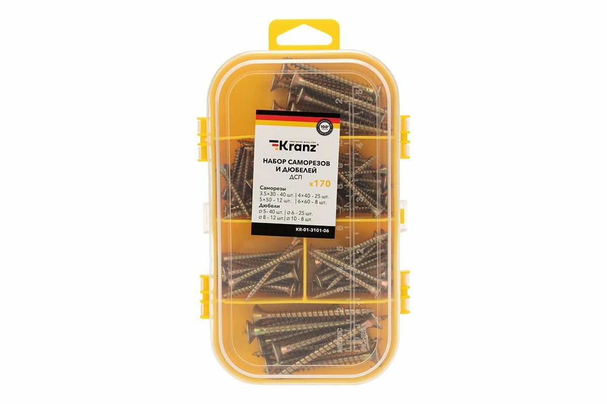 Набор саморезов и дюбелей для ДСП KRANZ 170 шт. KR-01-3101-06 интересное: