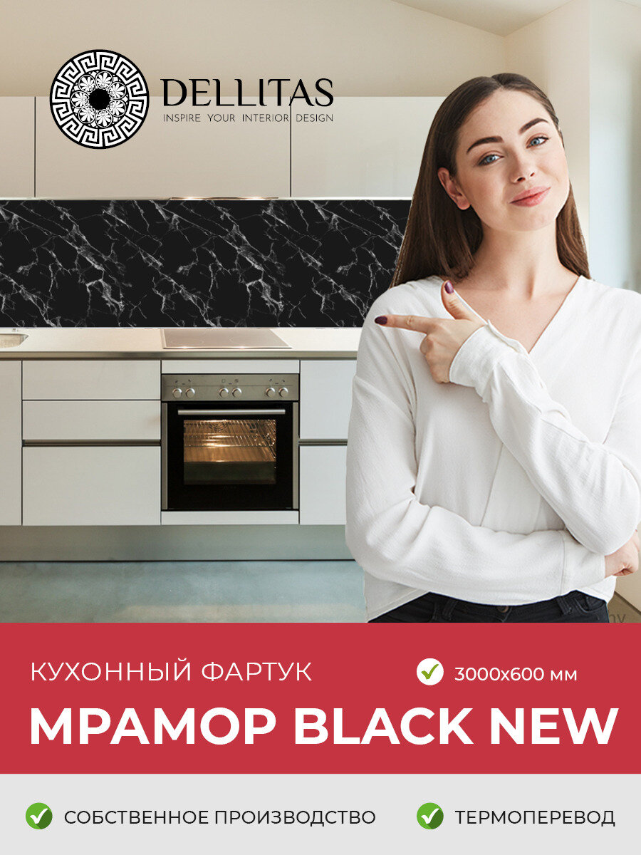 Фартук Кухонный на стену "Мрамор Черный" 3000*600*1,5 мм, ПВХ, термоперевод с жиростойким глянцевым покрытием