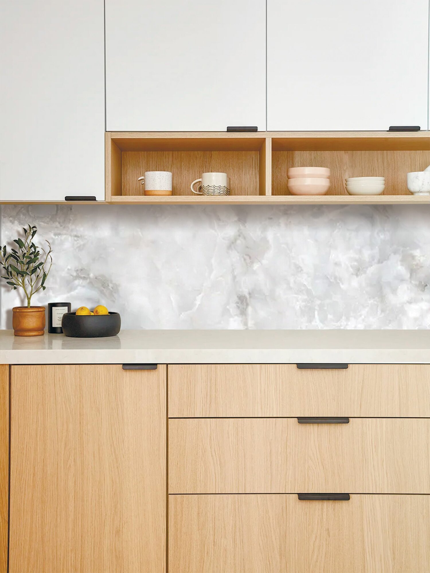 Фартук для кухни на стену 3000х600 мм, глянцевый Мрамор серый. Панель стеновая ПВХ влагостойкая декоративная