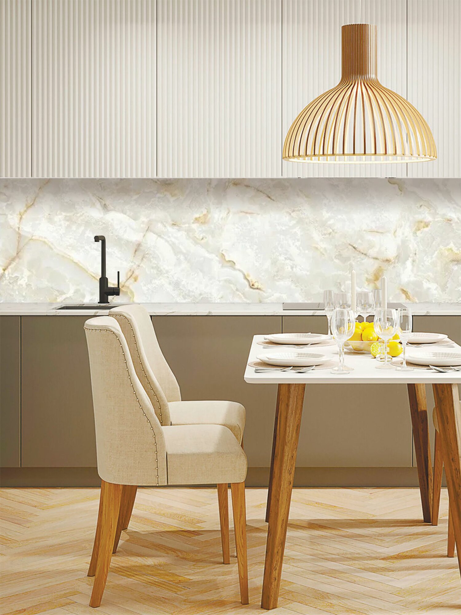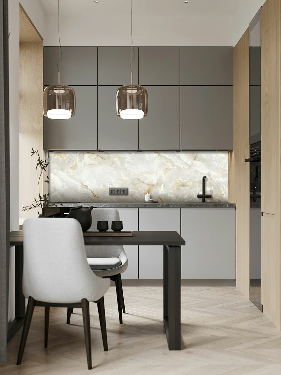 Фартук для кухни на стену 3000х600 мм, полуглянцевый Рецциато. Панель стеновая ПВХ влагостойкая декоративная