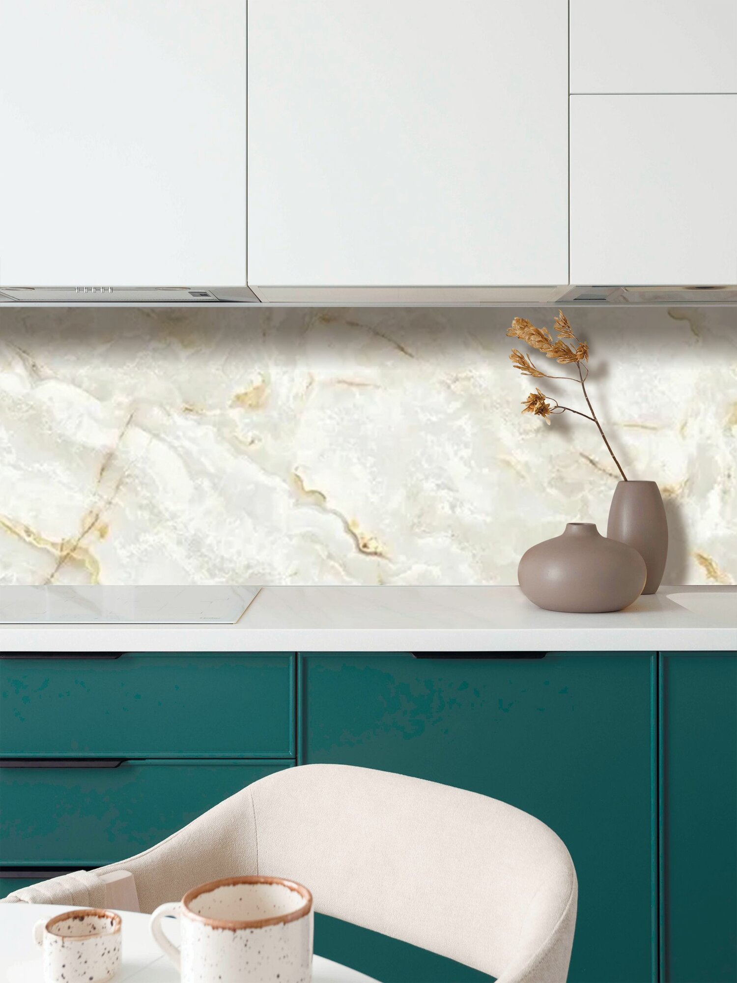 Фартук для кухни на стену 3000х600 мм, полуглянцевый Мрамор. Панель стеновая ПВХ влагостойкая декоративная