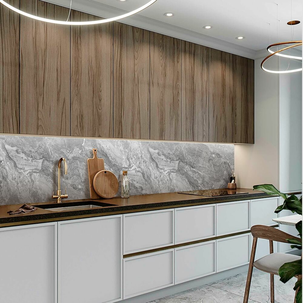 СохранитьФартук для кухни на стену 3000х600 мм, глянцевый Мрамор серый. Панель стеновая ПВХ влагостойкая декоративная интересное: